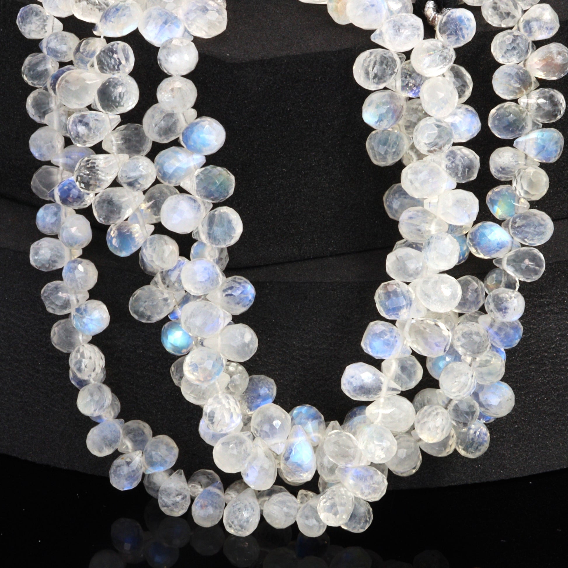 AA Blue Rainbow Moonstone 7x5mm Faceted Teardrop Briolettes Bead Strand