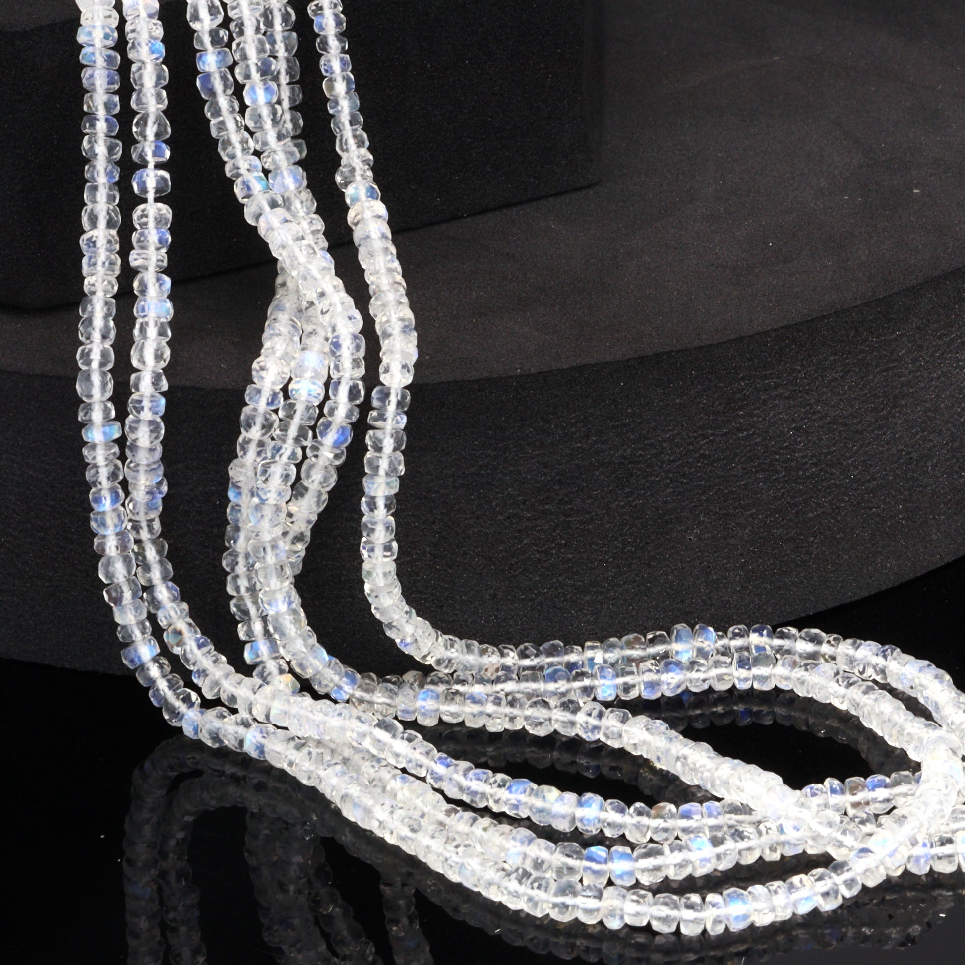 AAA Blue Rainbow Moonstone 3.5mm Hand Faceted Rondelles Bead Strand