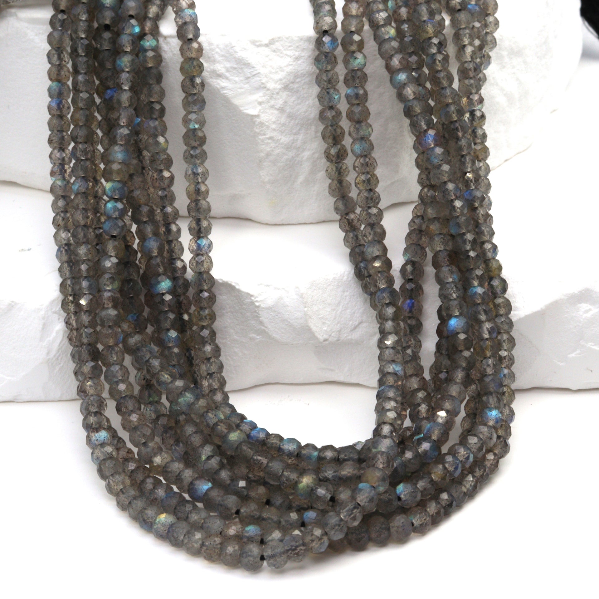 Blue Labradorite 3mm Faceted Rondelles Bead Strand