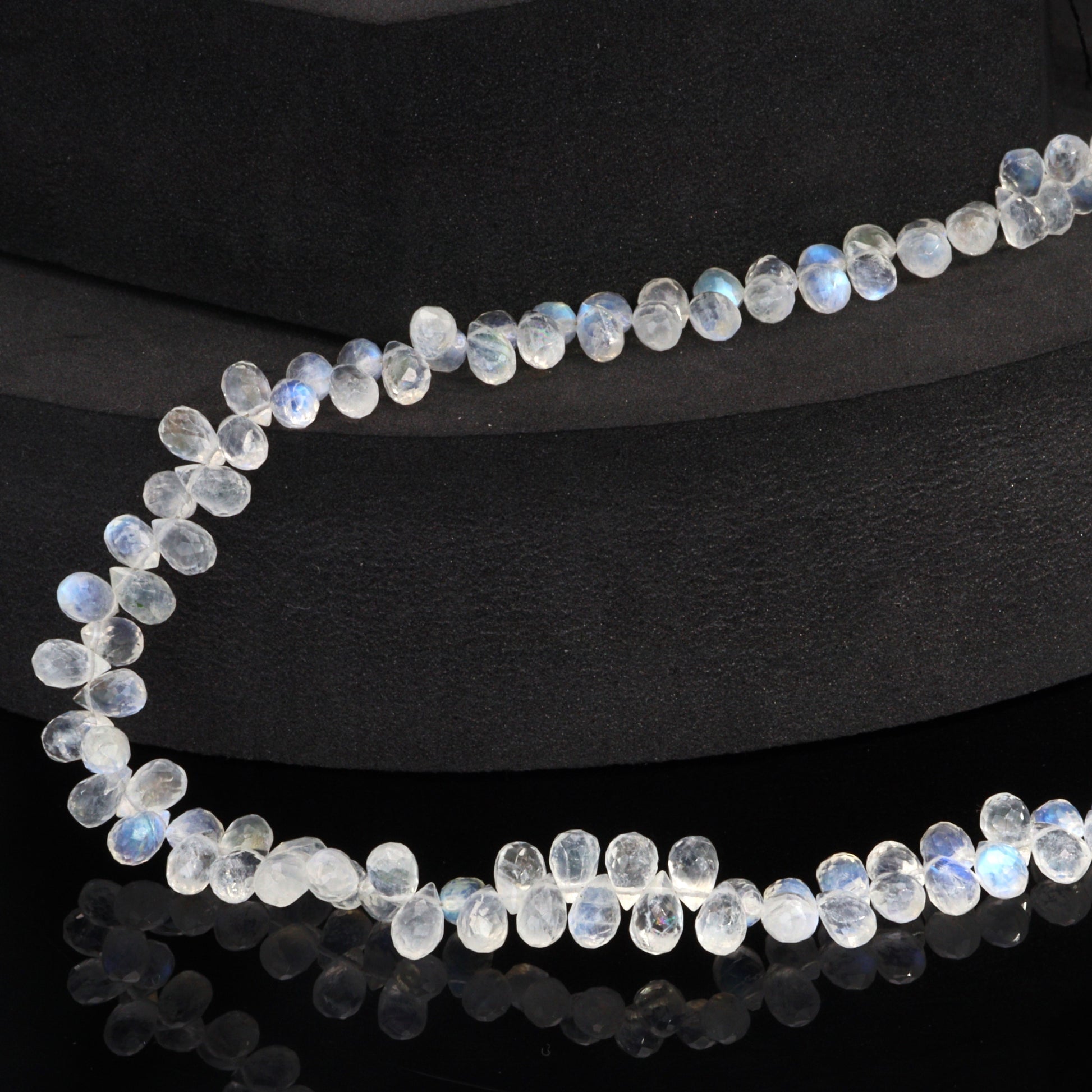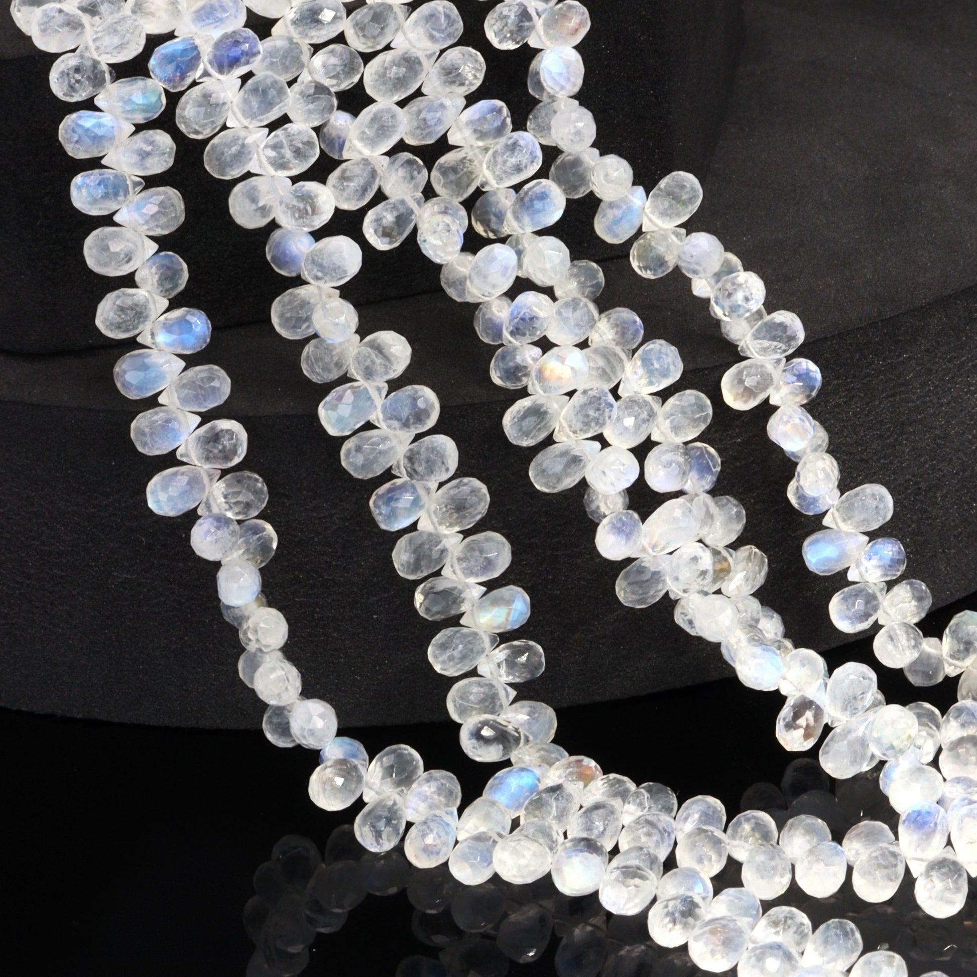 Blue Rainbow Moonstone 6x4mm Faceted Teardrop Briolettes Bead Strand