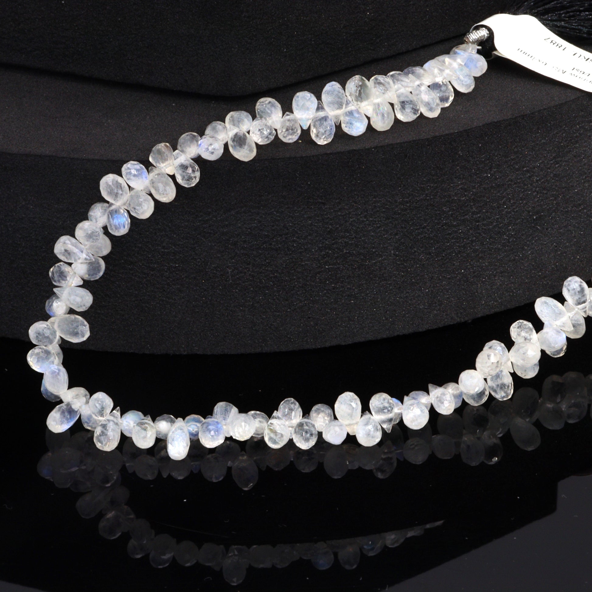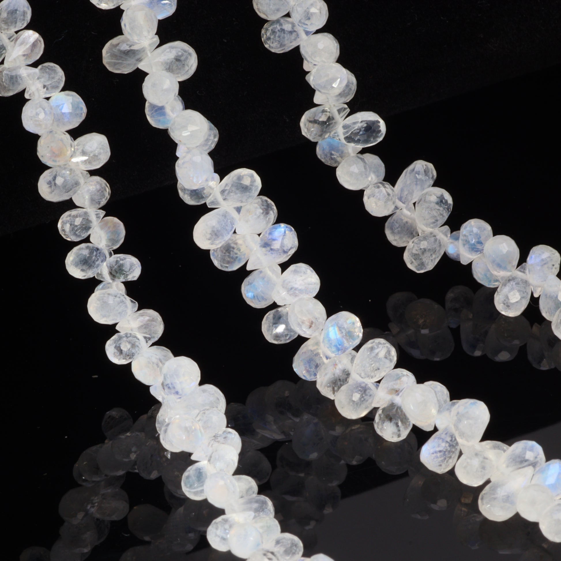 Blue Rainbow Moonstone 6x4mm Faceted Teardrop Briolettes Bead Strand
