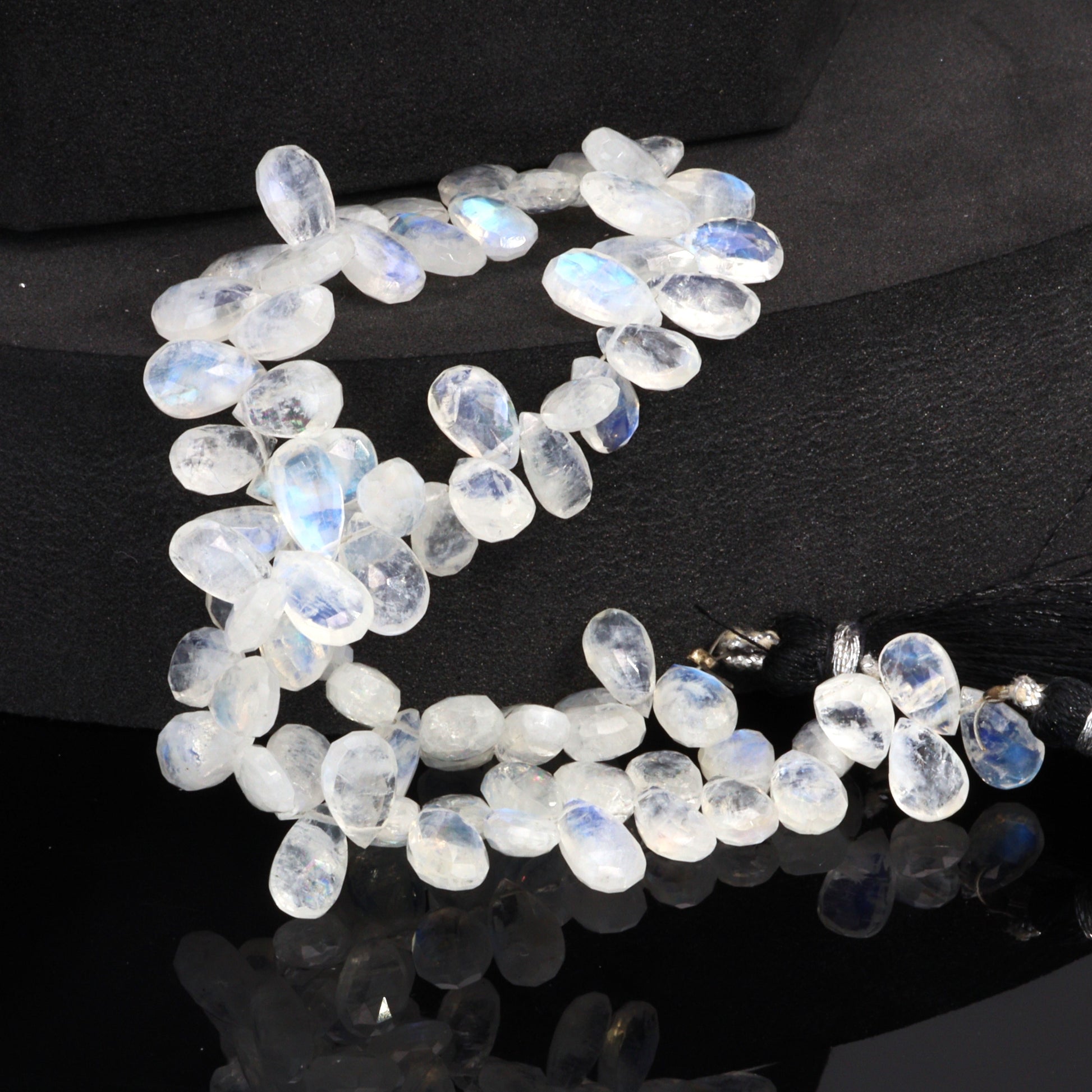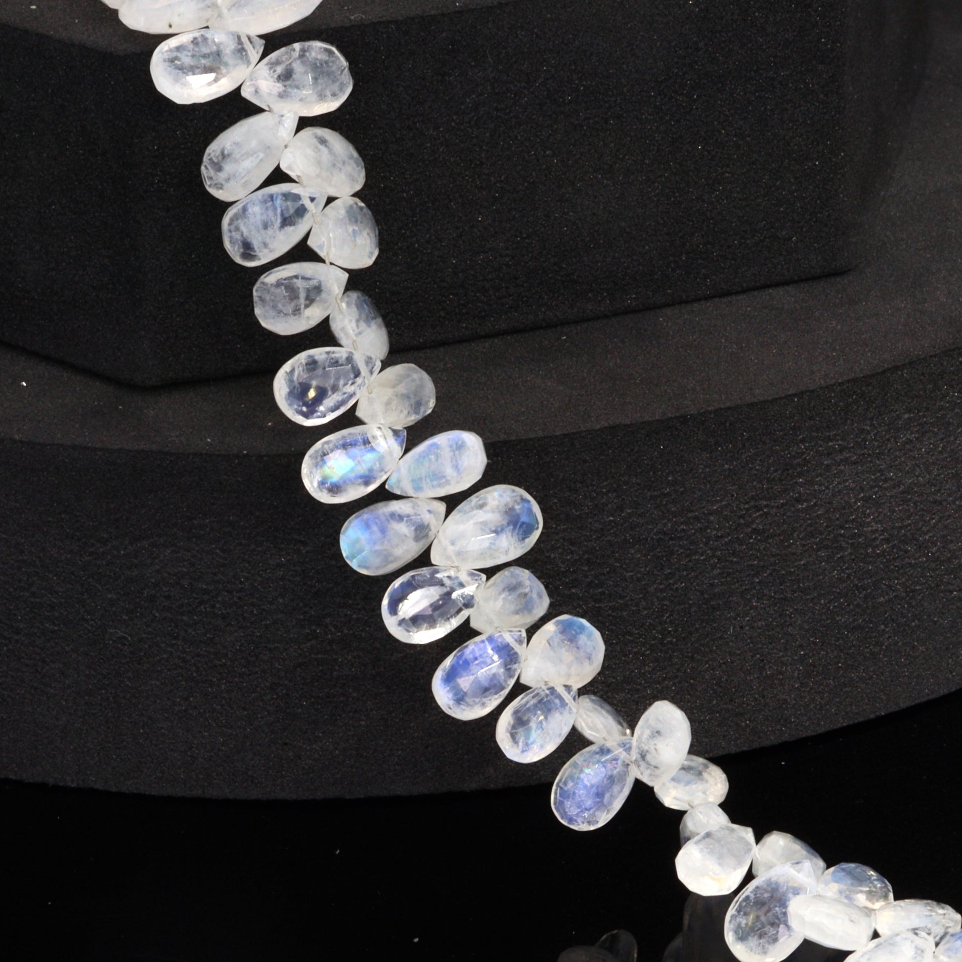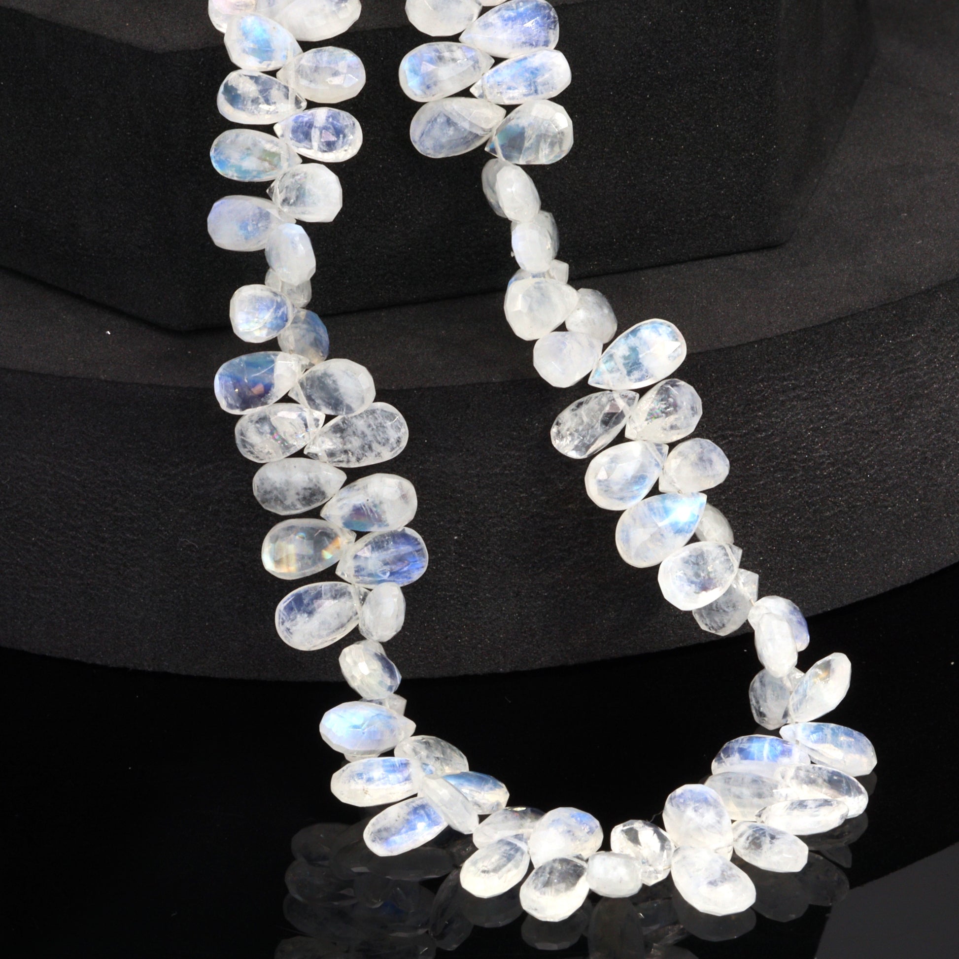 Blue Rainbow Moonstone 9x5mm Faceted Pear Shaped Briolettes Bead Strand