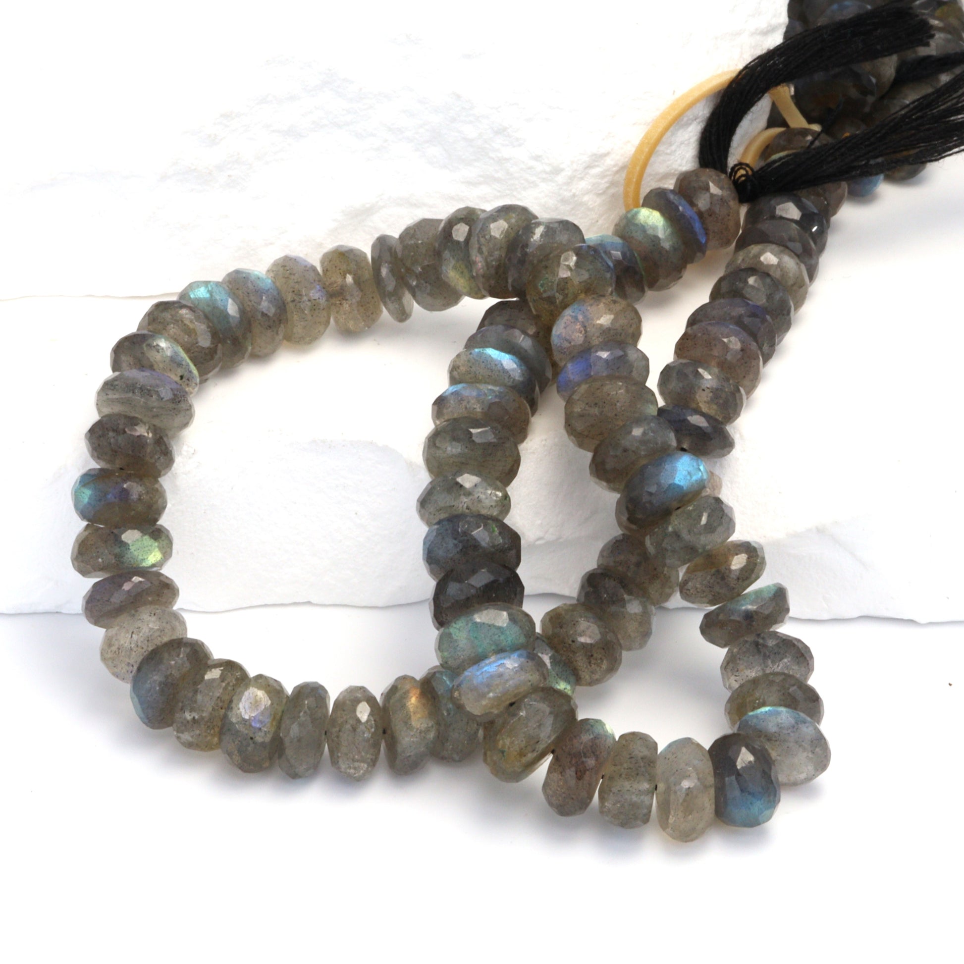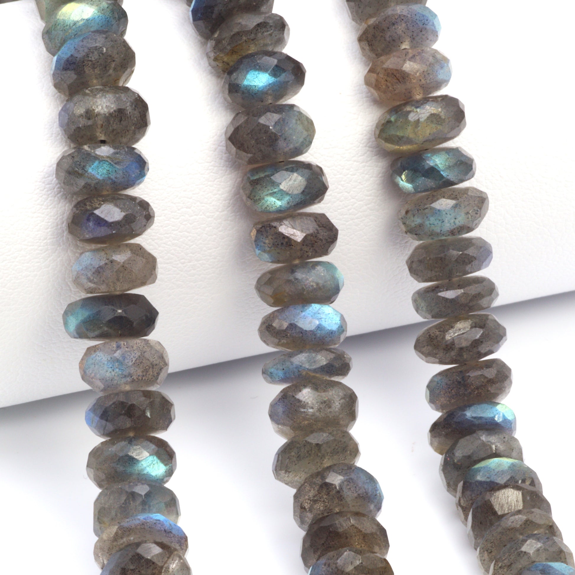 Natural Blue Labradorite 8mm Faceted Rondelles Bead Strand