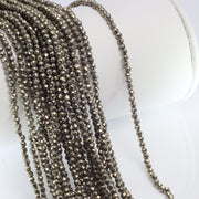 Natural Pyrite 2mm Faceted Rounds Bead Strand