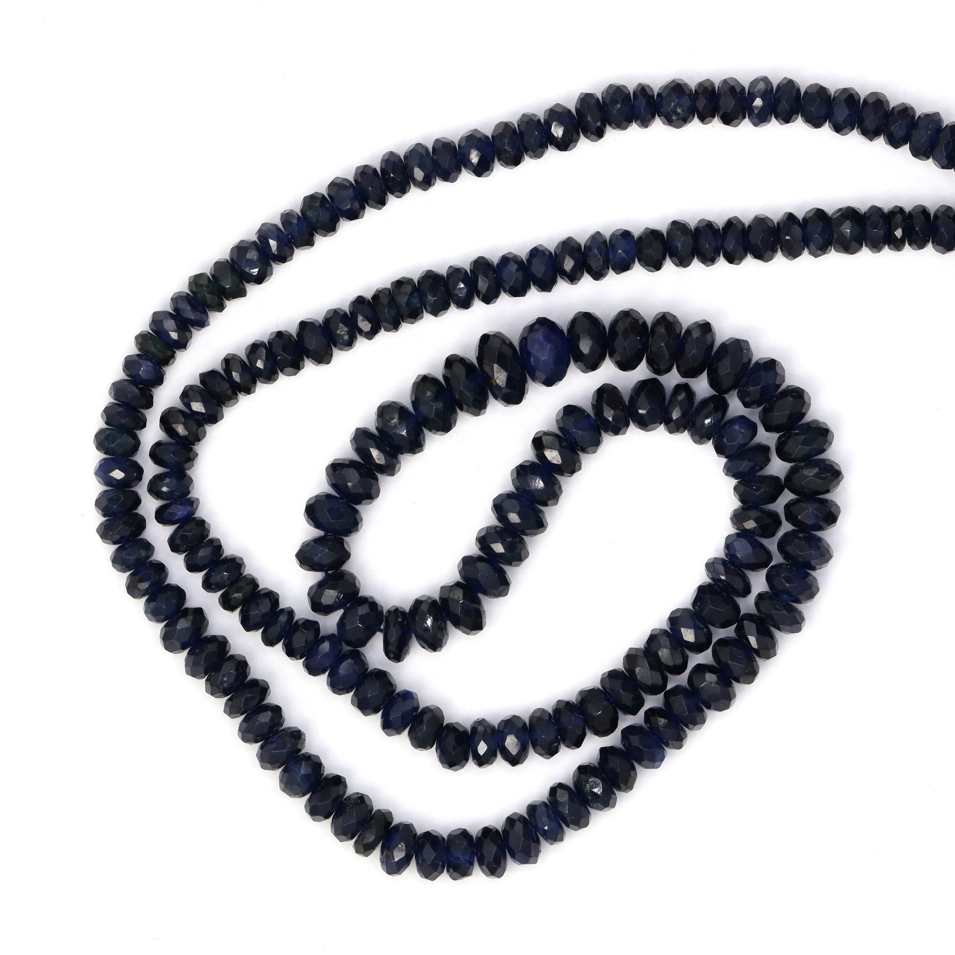 Navy Blue Sapphire 4mm - 5.5mm Hand Faceted Rondelles Bead Strand