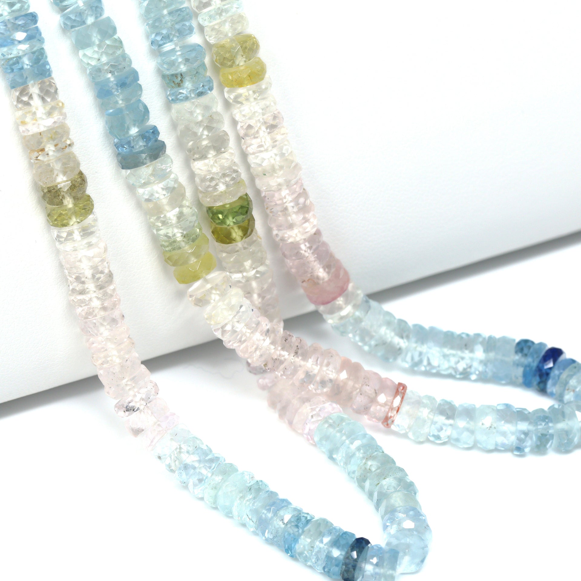 Ombre Aquamarine and Morganite 6mm Faceted Tires Bead Strand