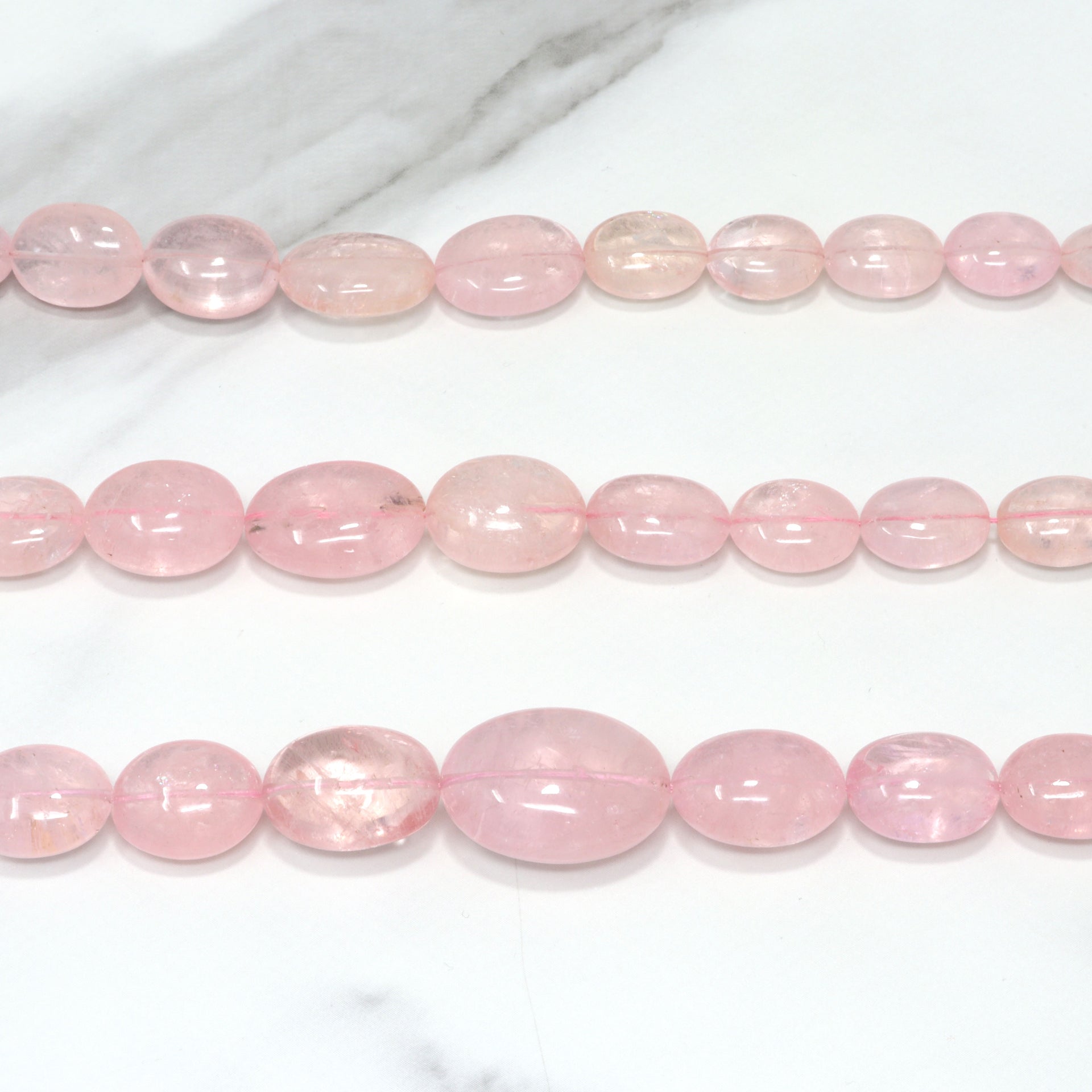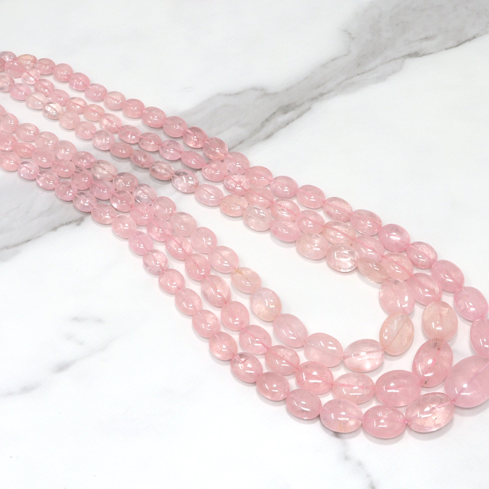 Pink Morganite 10x8mm - 20x17mm Smooth Ovals 3 Strand Bead Necklace