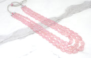 Pink Morganite 11x9mm - 16x12mm Smooth Nuggets 3 Strand Bead Necklace