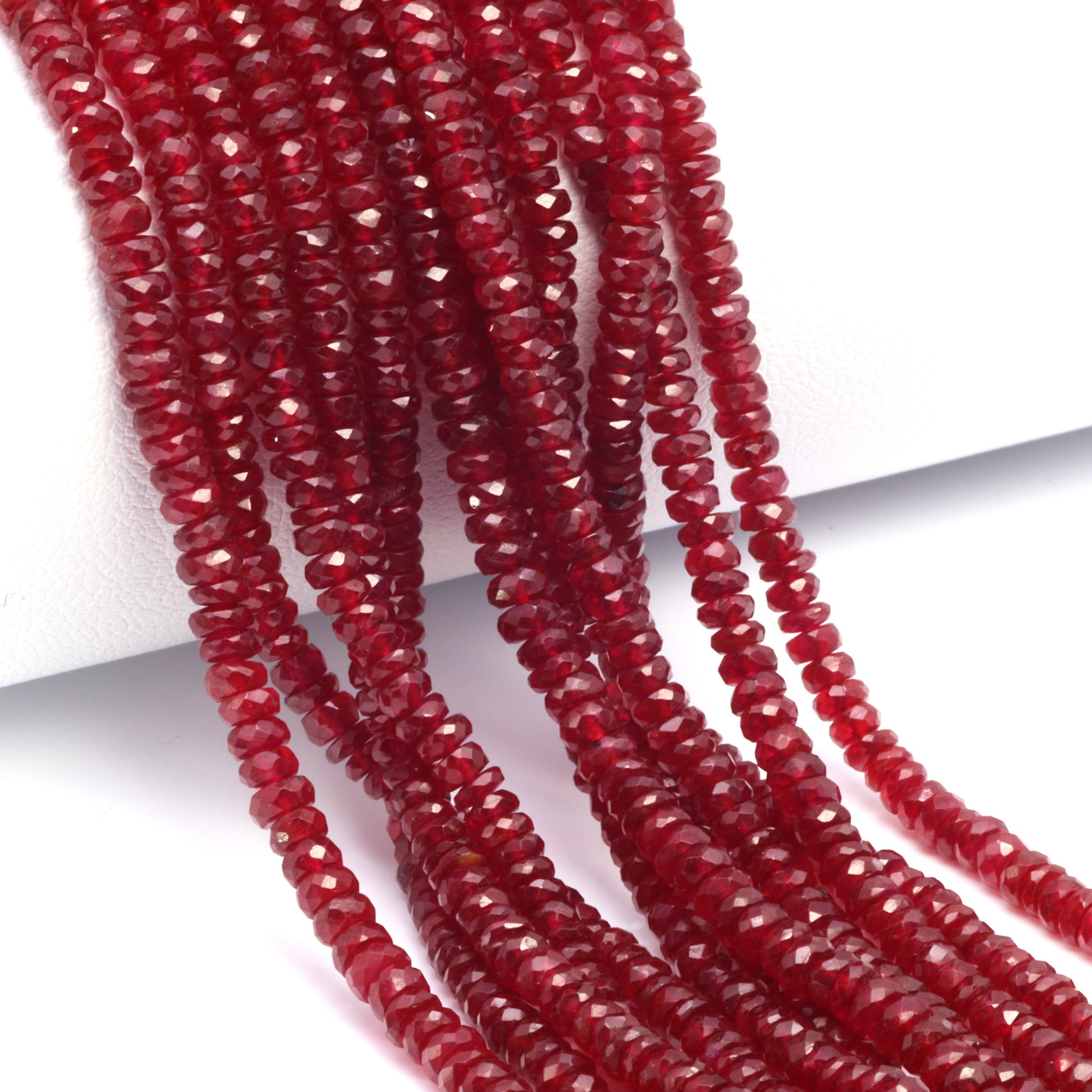Red Ruby 3mm Hand Faceted Rondelles Bead Strand