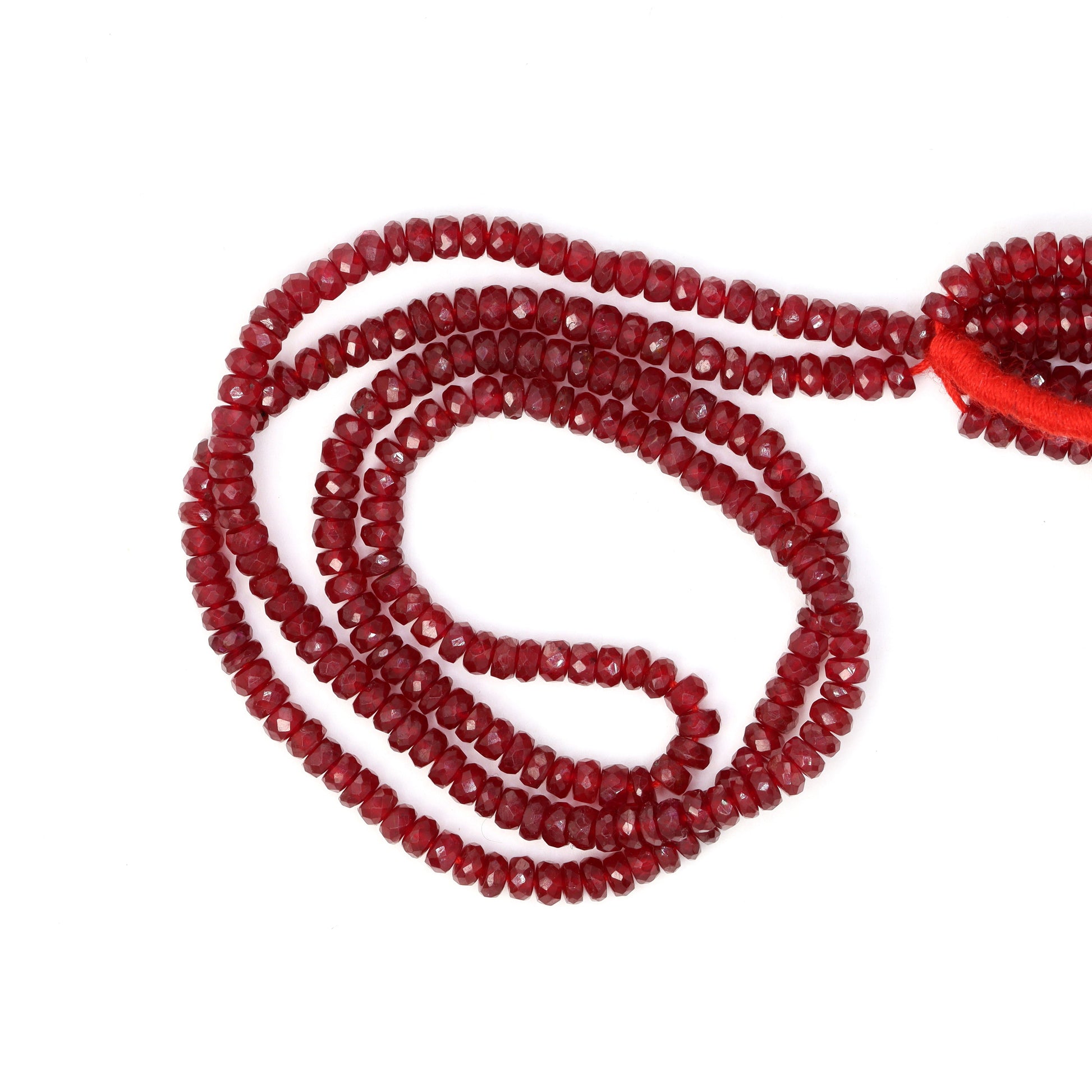 Red Ruby 3mm Hand Faceted Rondelles Bead Strand