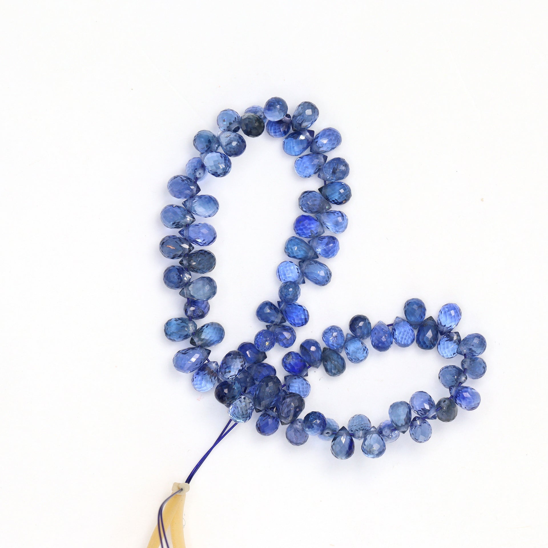 Royal Blue Sapphire 4x2mm Faceted Teardrop Briolettes Bead Strand