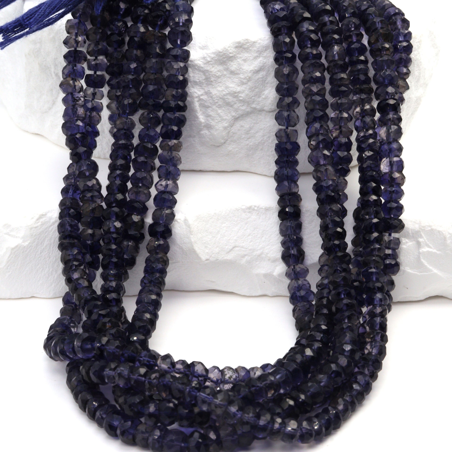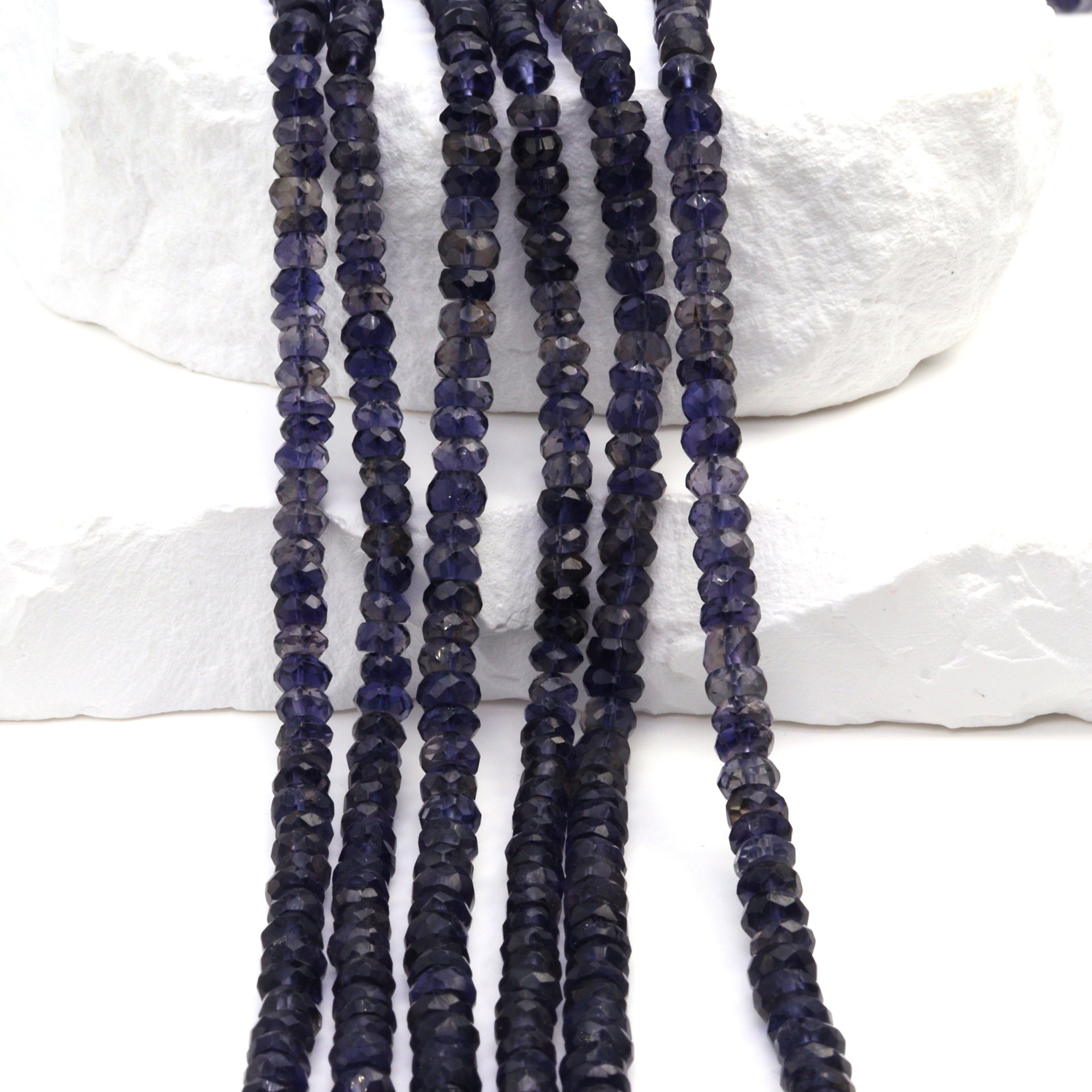 Blue Iolite 4mm Hand Faceted Rondelles Bead Strand