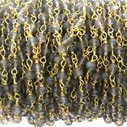 Blue Labradorite 3mm Faceted Rondelles Rosary Chain Sterling Silver with Gold Plating Wire Wrap Chain by the Foot