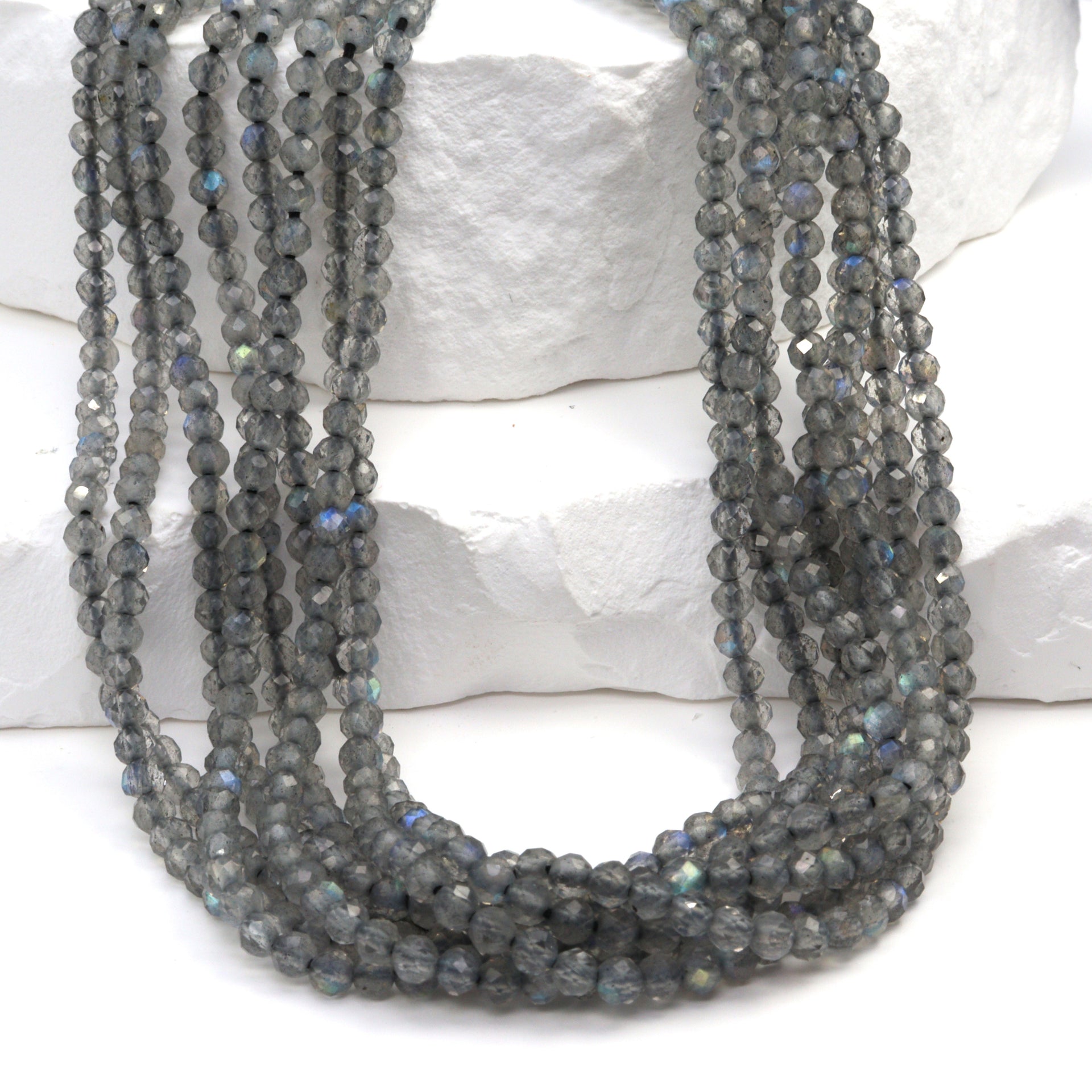 Blue Labradorite 3mm Faceted Rounds Bead Strand