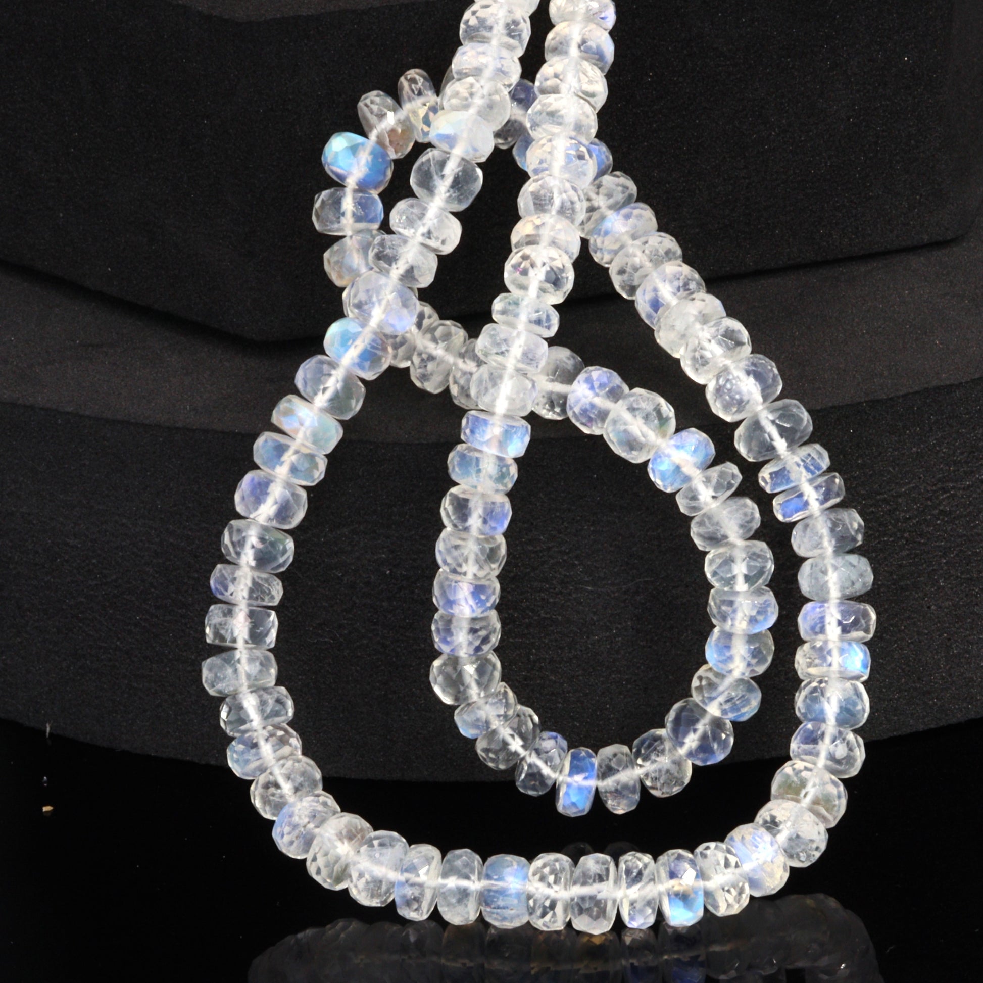 AA Blue Rainbow Moonstone 6mm Faceted Rondelles Bead Strand