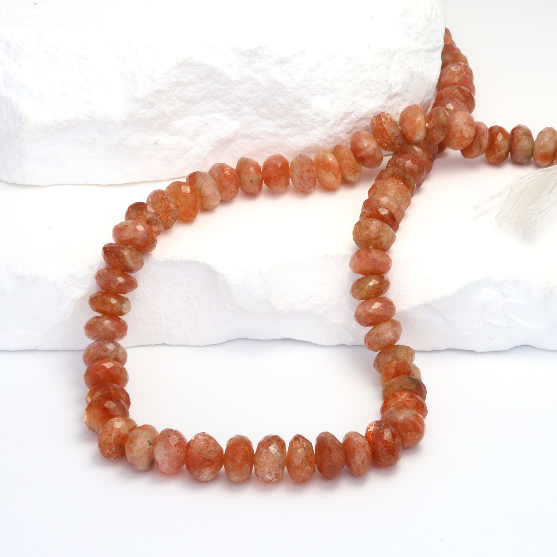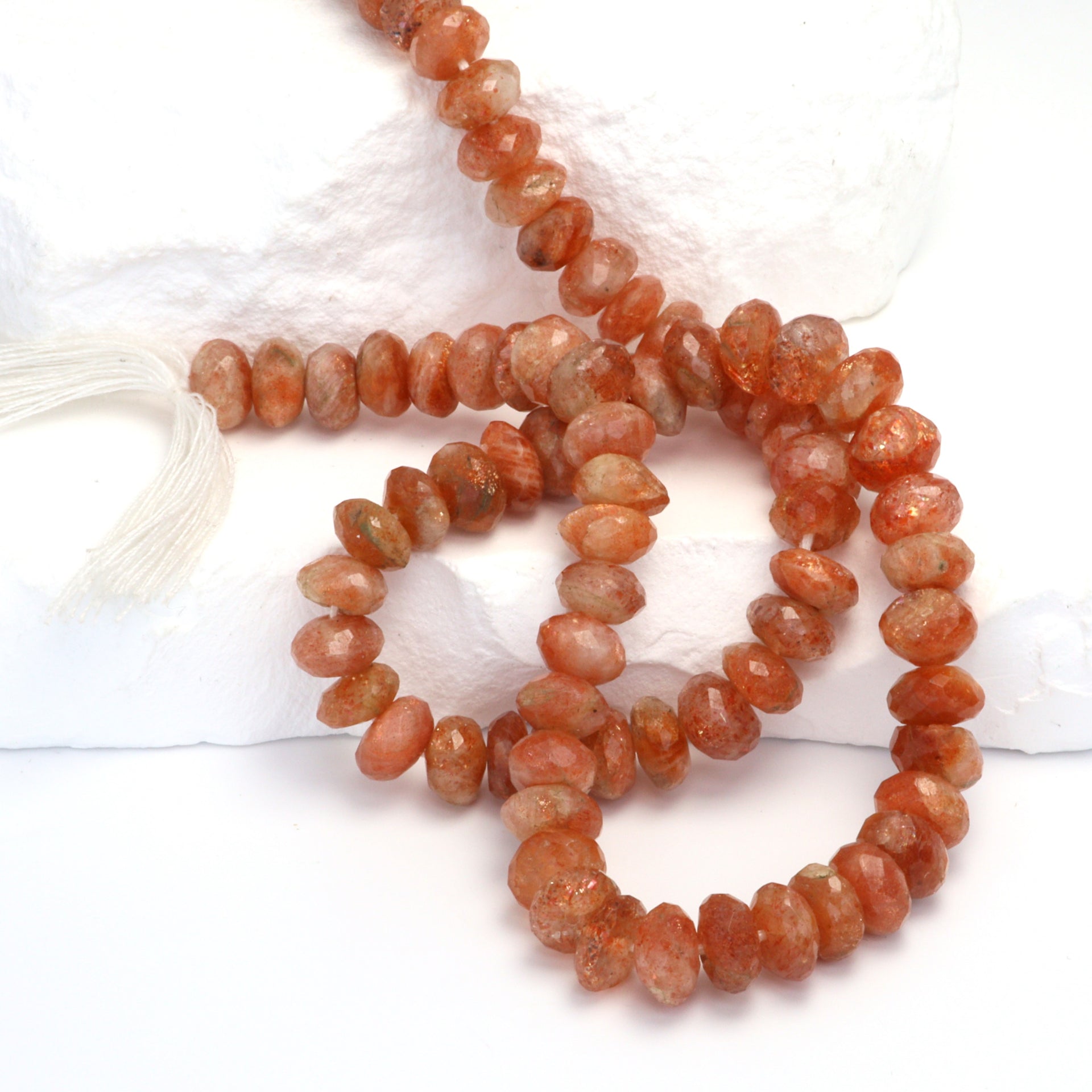 Discover the captivating allure of our 13" Full Bead Strand of Brown Sunstone Faceted Rondelles. Each 8mm bead is meticulously crafted, showcasing the unique brilliance and warm, earthy hues of brown sunstone. These gemstone beads are perfect for jewelry designers and stores seeking high-quality, wholesale gemstones. The faceted rondelle shape of each bead captures and reflects light, enhancing the natural beauty of the sunstone. Whether used in a stunning necklace or a statement bracelet, these beads add a touch of elegance and sophistication to any jewelry piece. Experience the exceptional quality and charm of our brown sunstone faceted rondelles today.