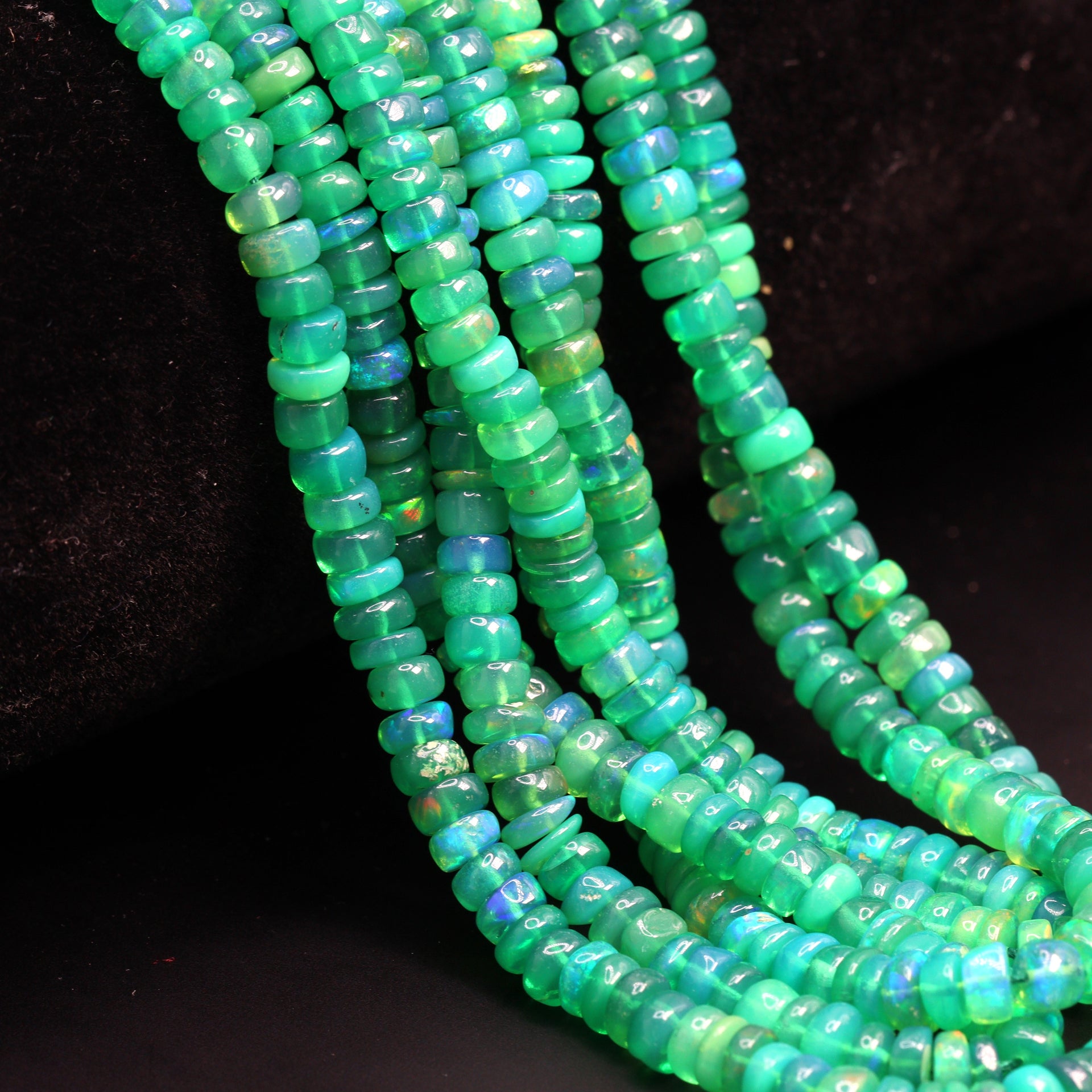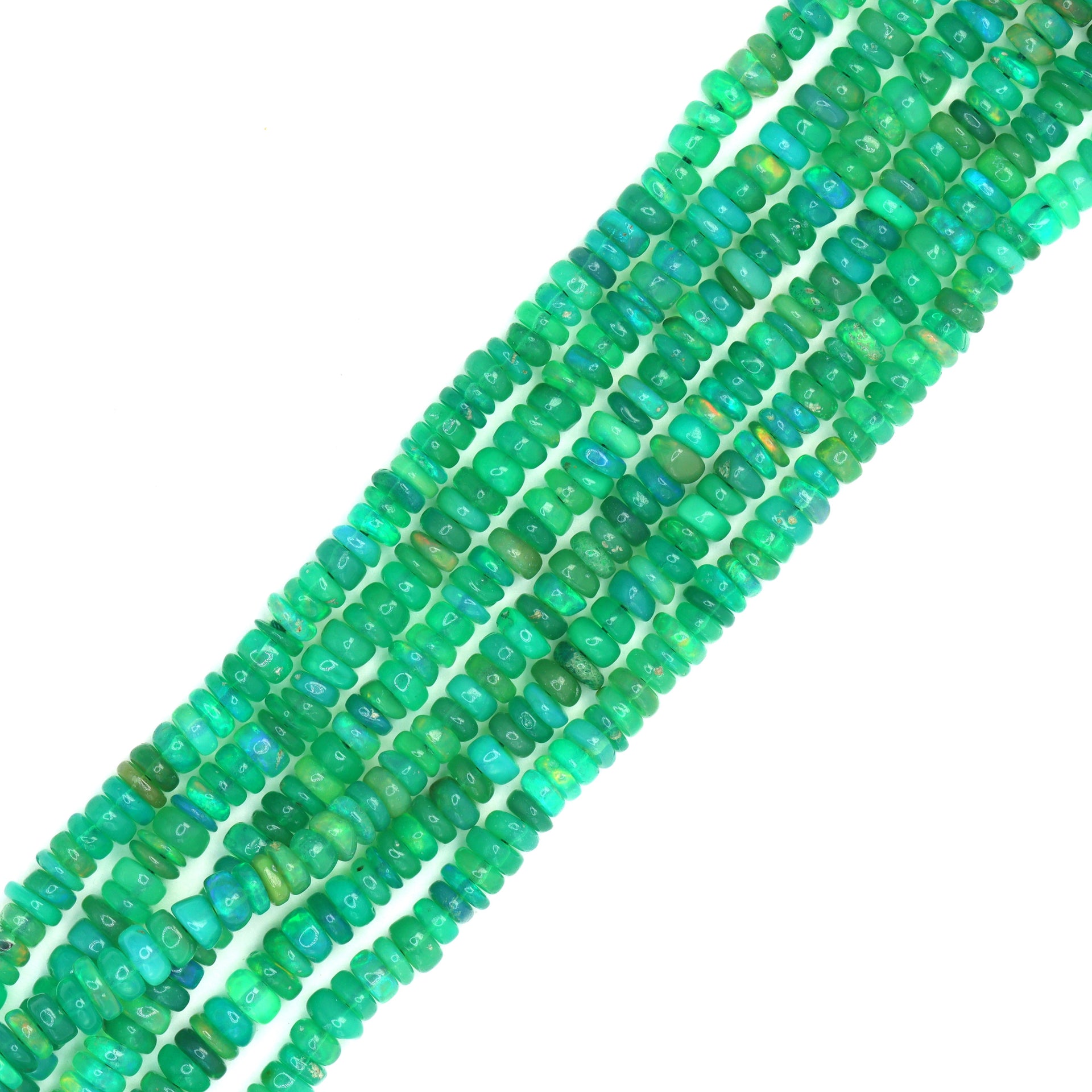 Green Ethiopian Opal 4mm Smooth Rondelles Bead Strand