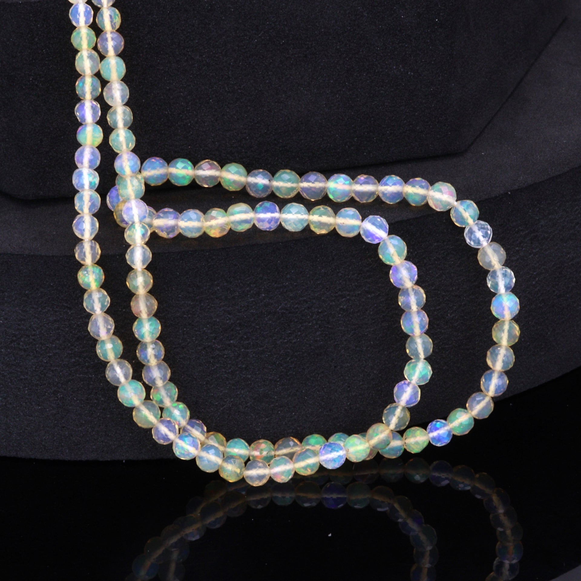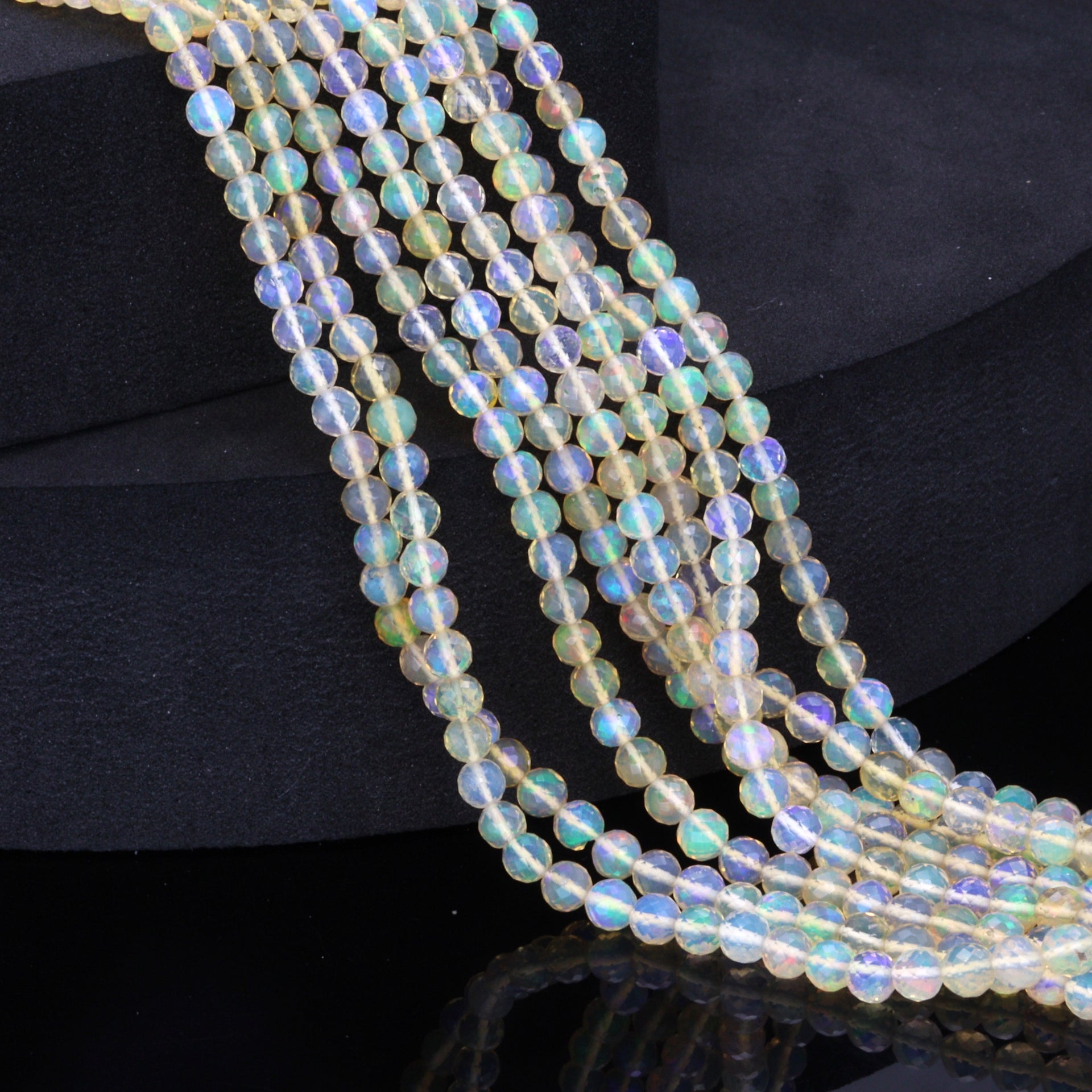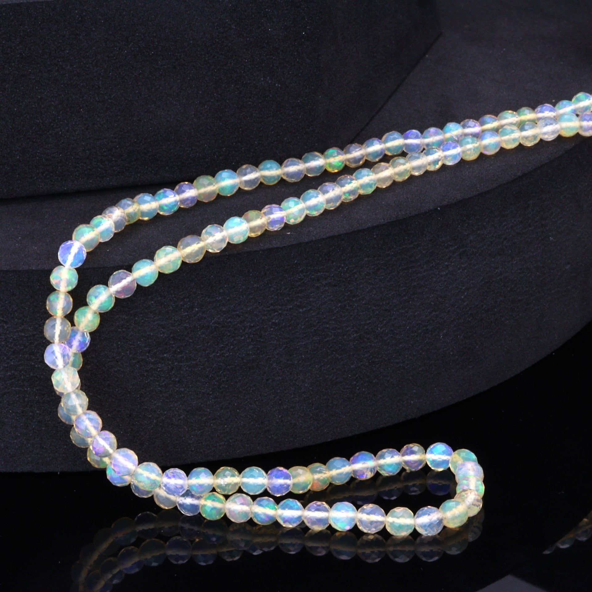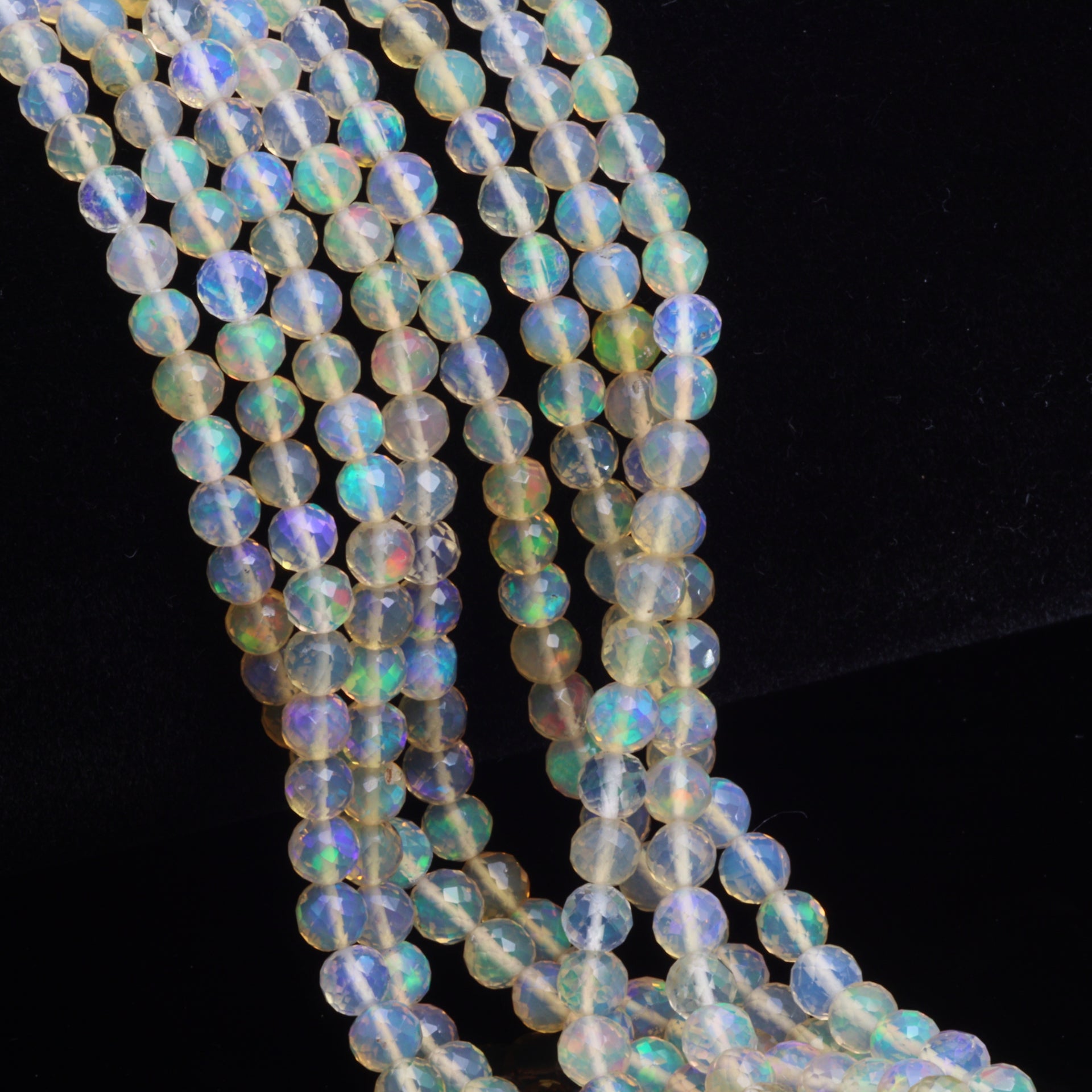Warm White Ethiopian Opal 3mm - 4mm Hand Faceted Rounds Bead Strand