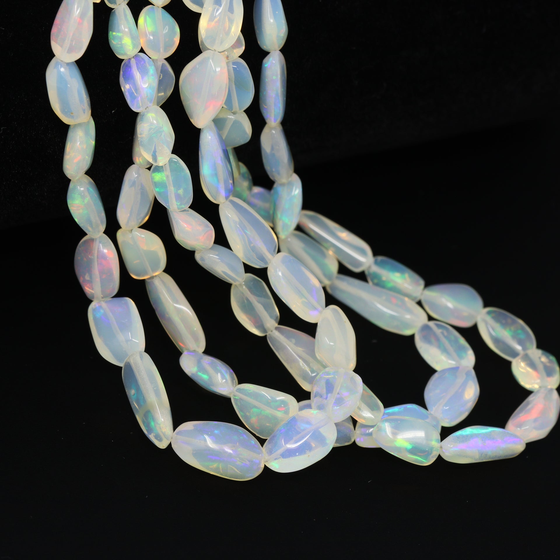 White Ethiopian Opal 6x4mm – 10x7mm Smooth Nuggets Bead Strand