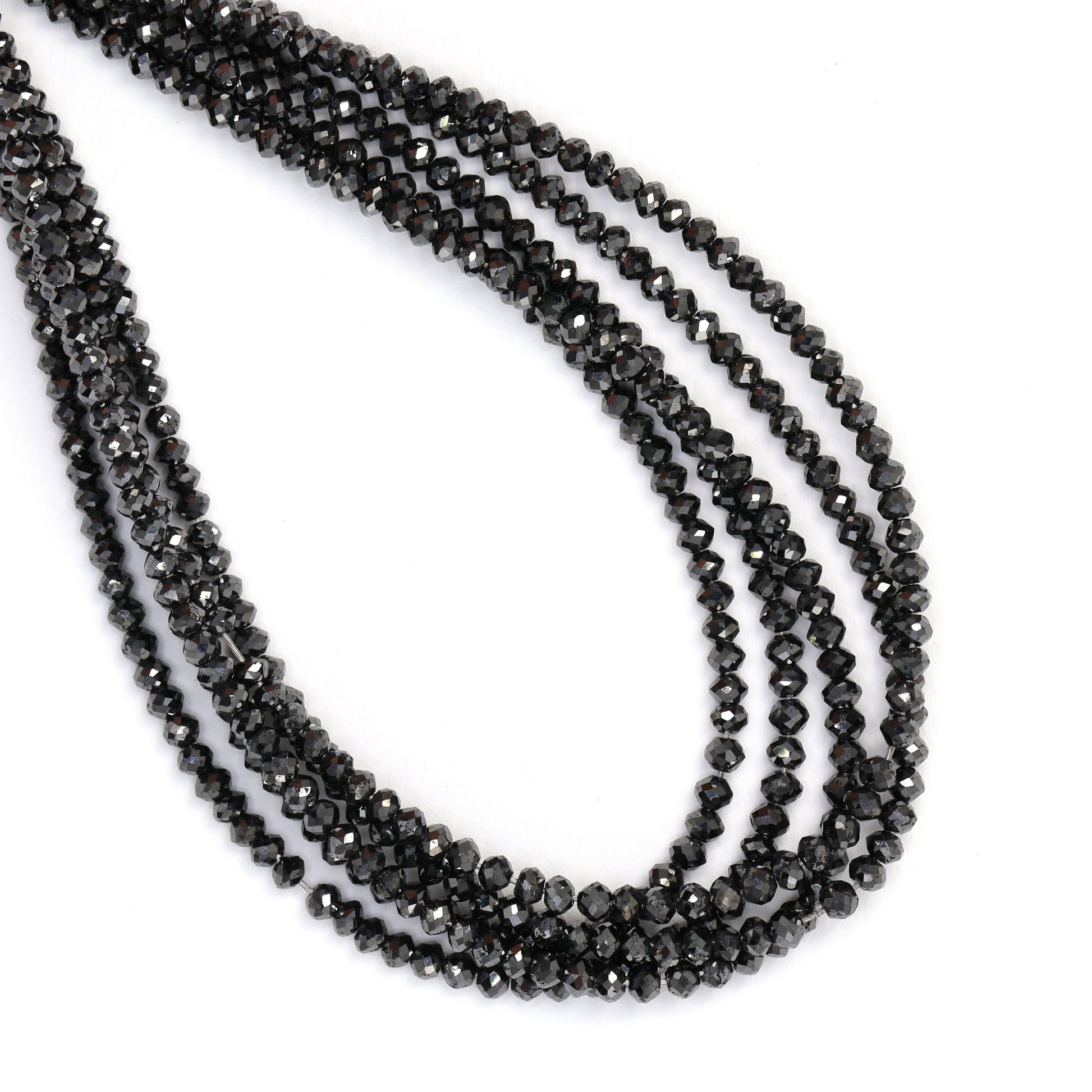 Black Diamond 2.4mm - 2.7mm Hand Faceted Rondelles Bead Strand