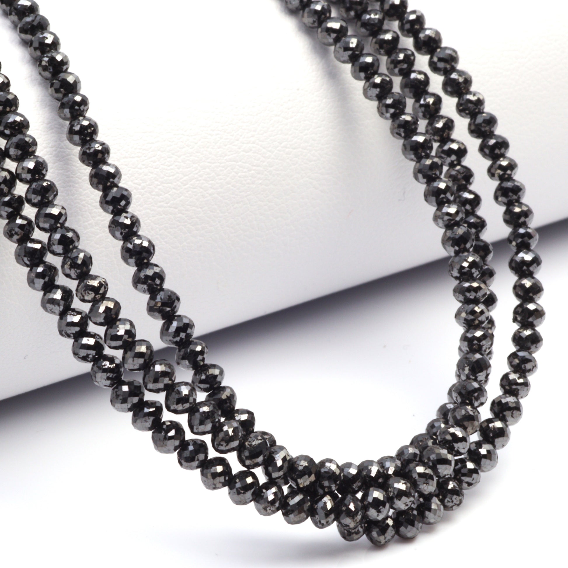Black Diamond 3mm - 3.5mm Hand Faceted Rondelles Bead Strand