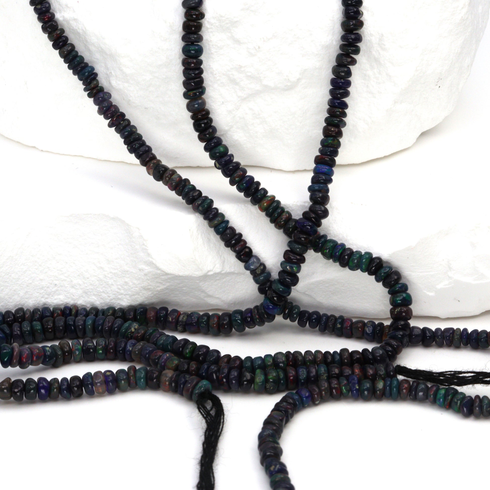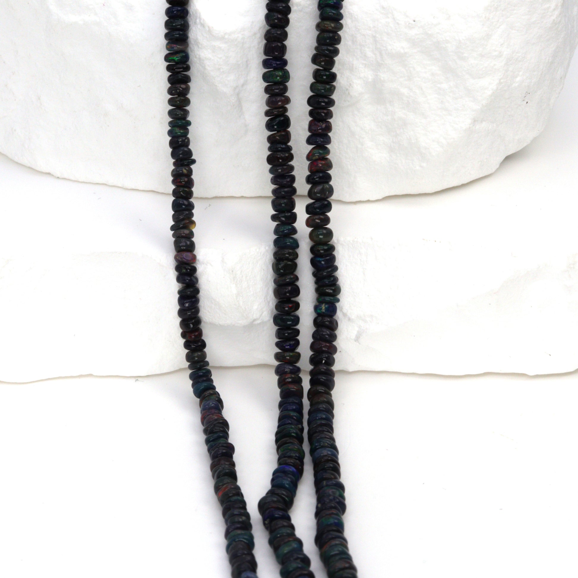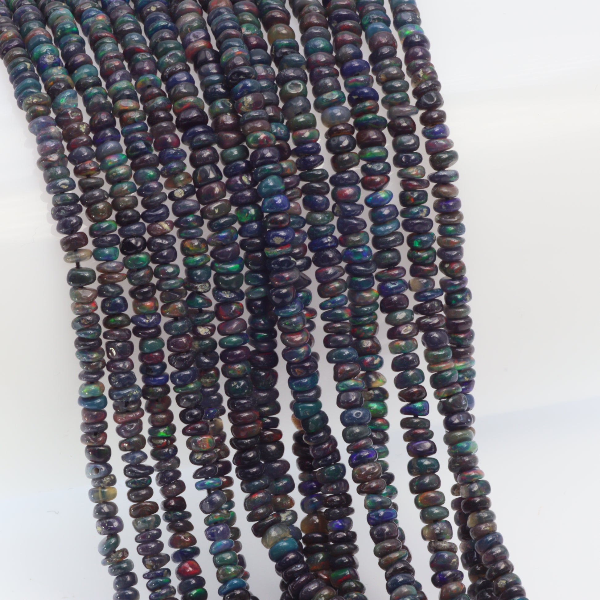 Black Ethiopian Opal 3mm Smooth Rondelles Bead Strand