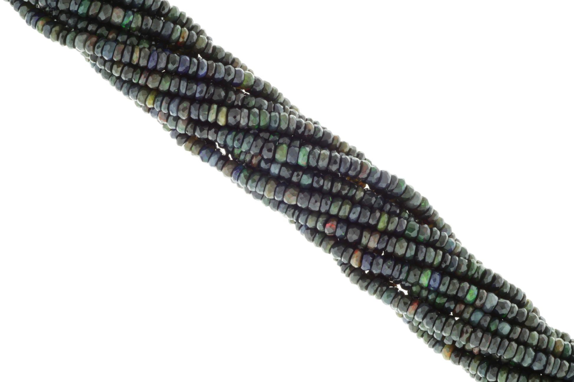Black Ethiopian Opal 4mm Hand Faceted Rondelles Bead Strand