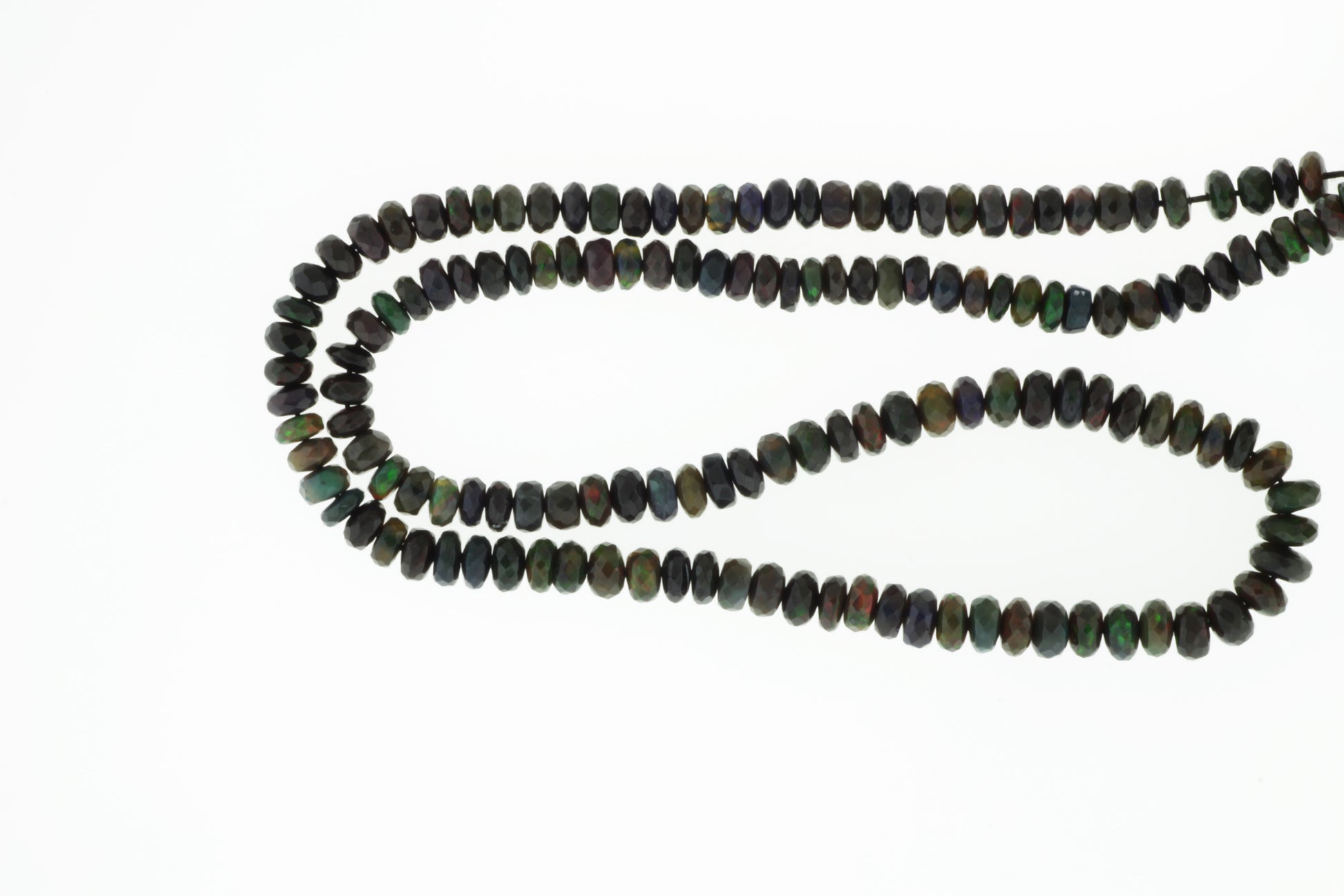 Black Ethiopian Opal 4mm Hand Faceted Rondelles Bead Strand