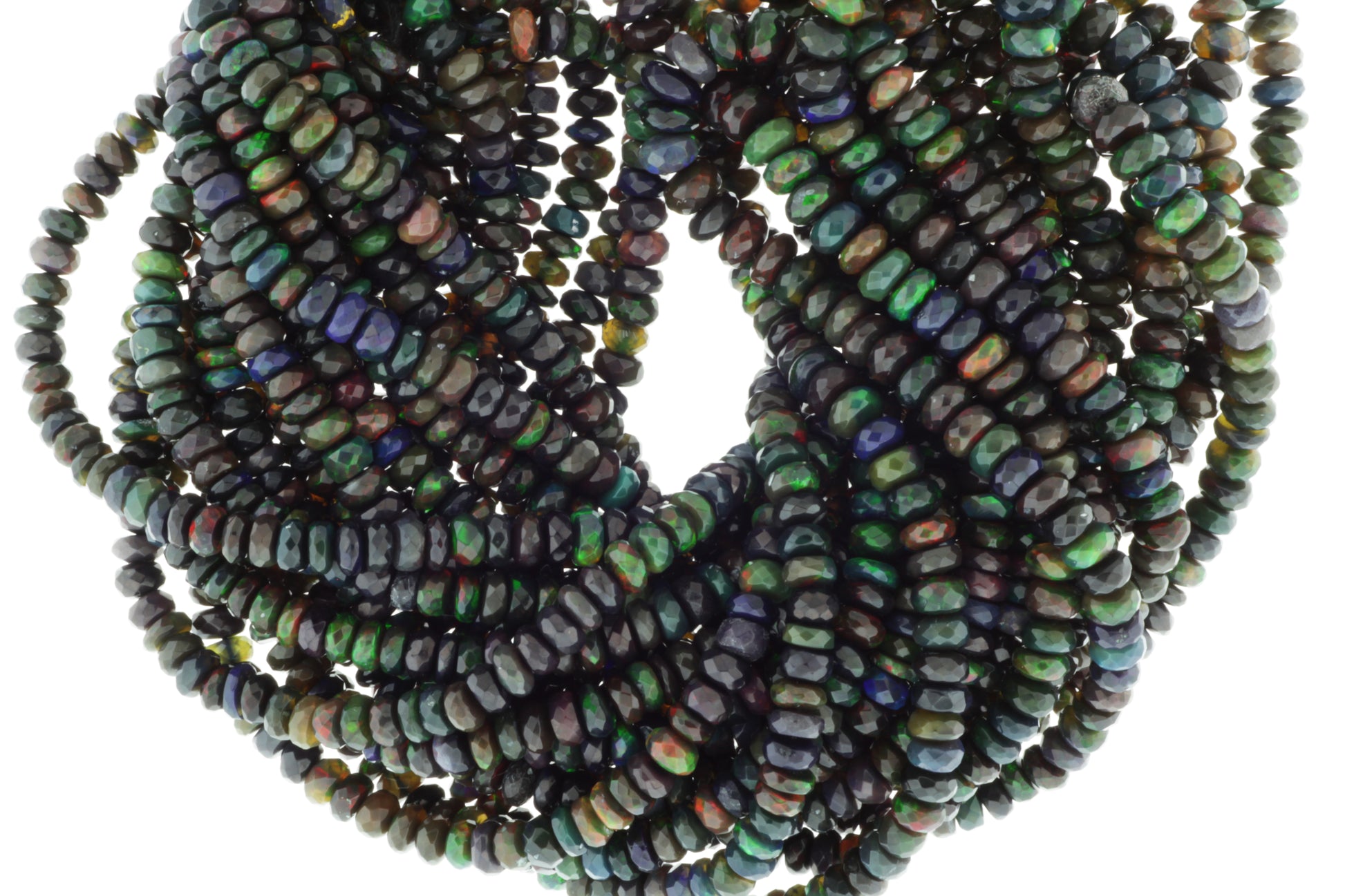 Black Ethiopian Opal 4mm Faceted Rondelles