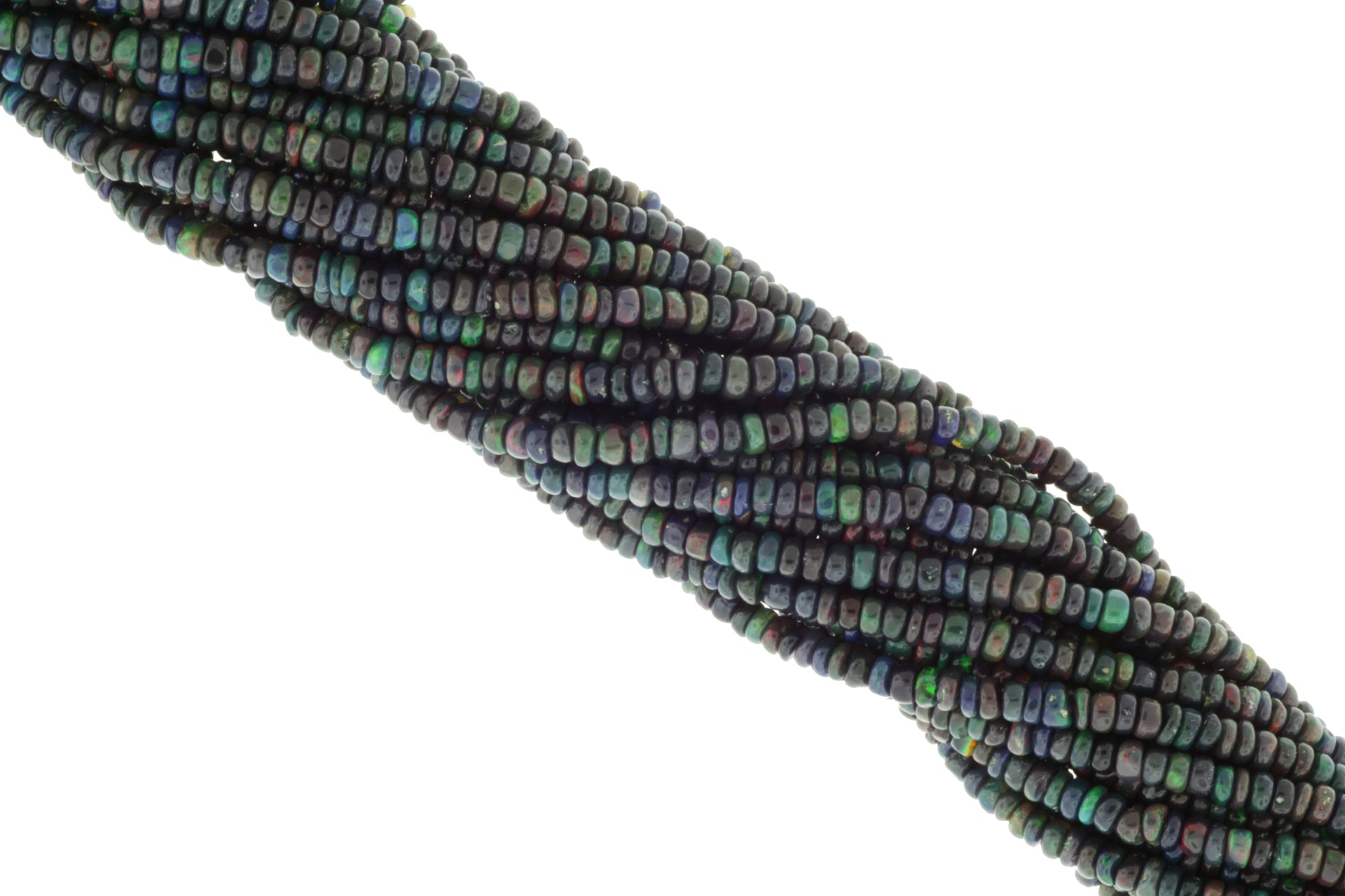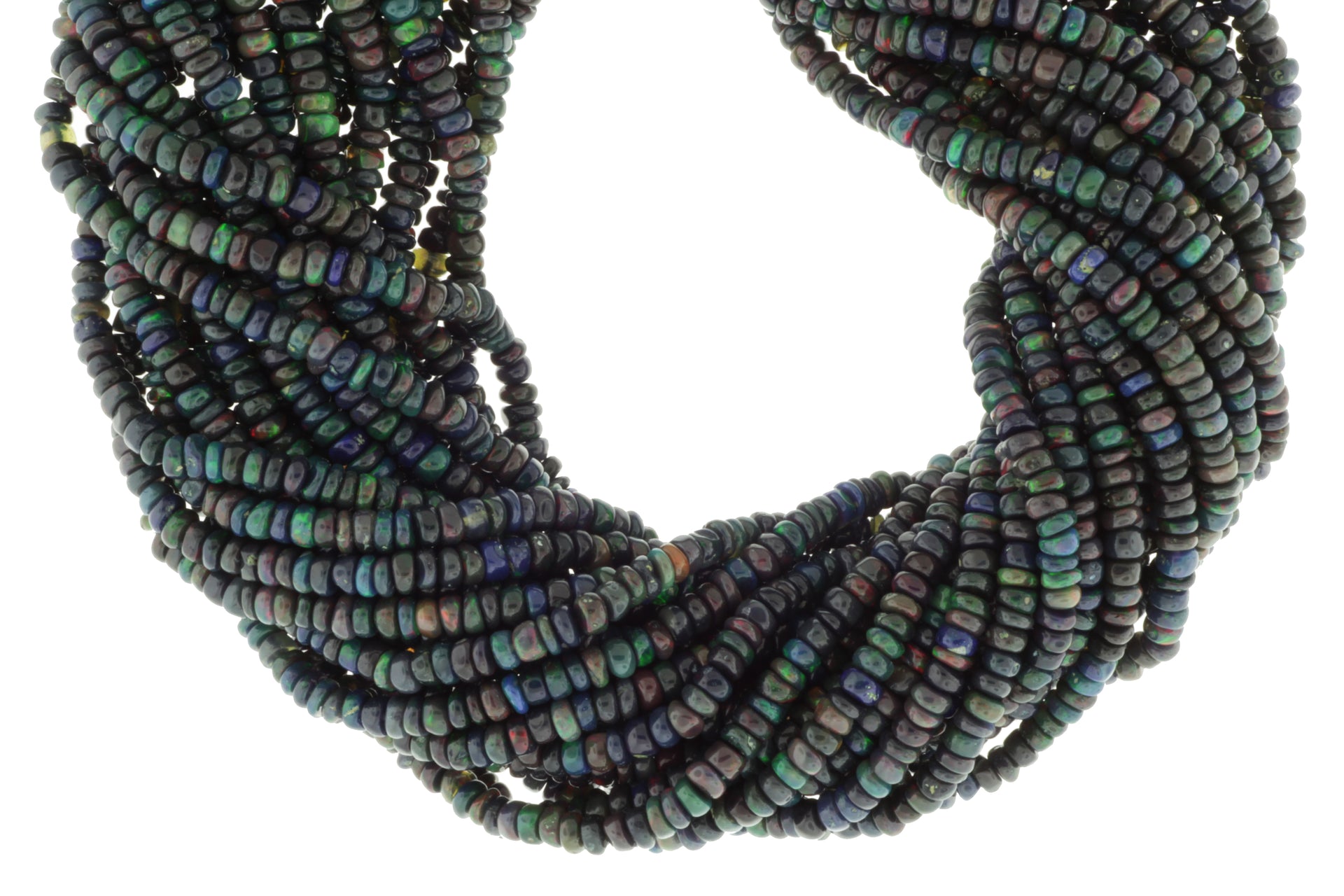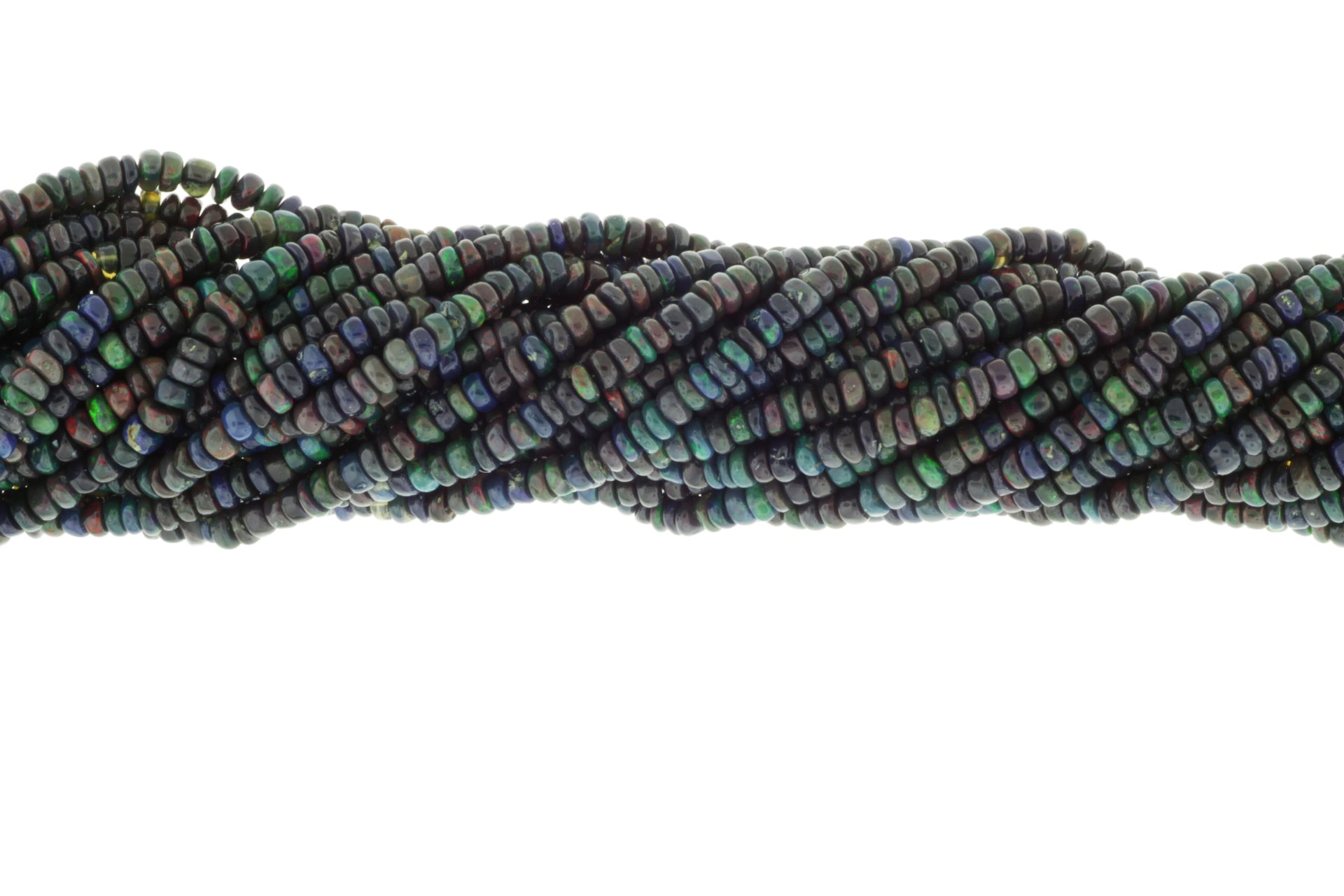 Black Ethiopian Opal 4mm Smooth Rondelles Bead Strand