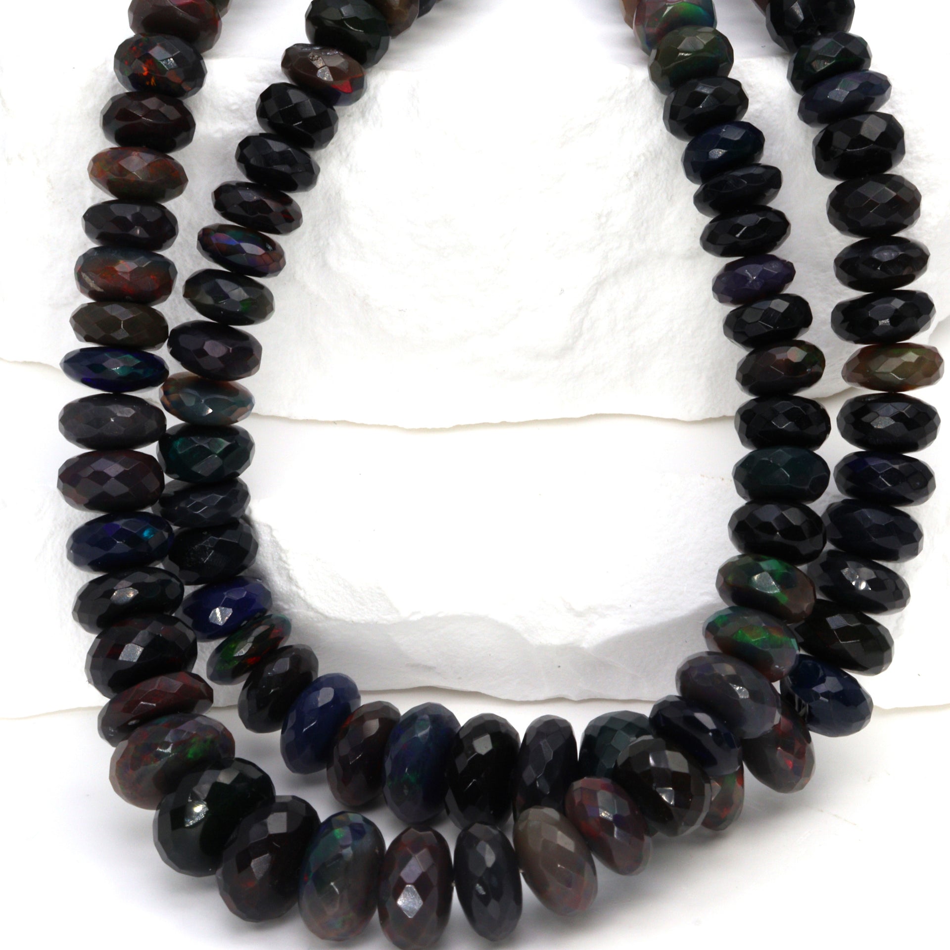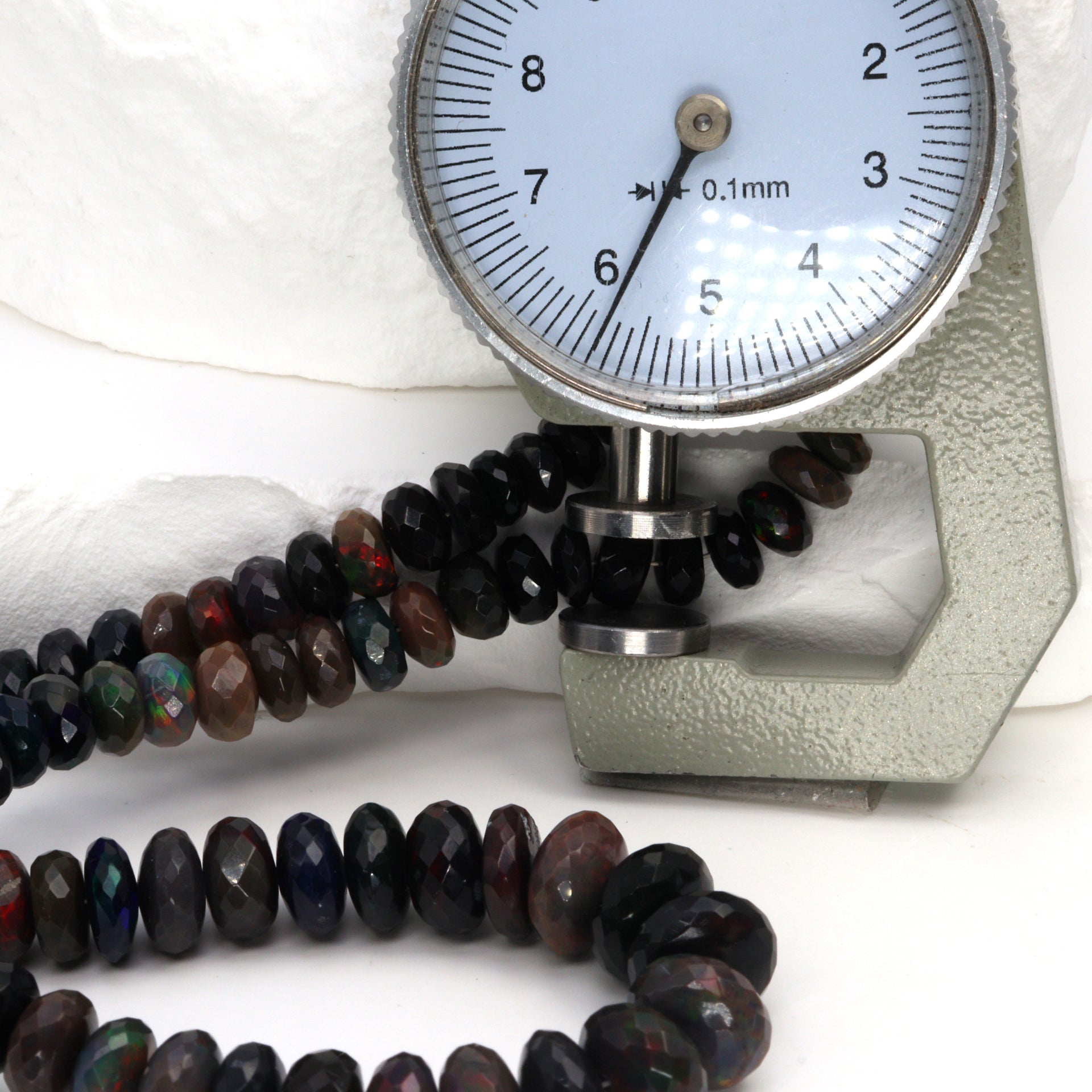 Black Ethiopian Opal 5mm - 8mm Faceted Rondelles Bead Strand