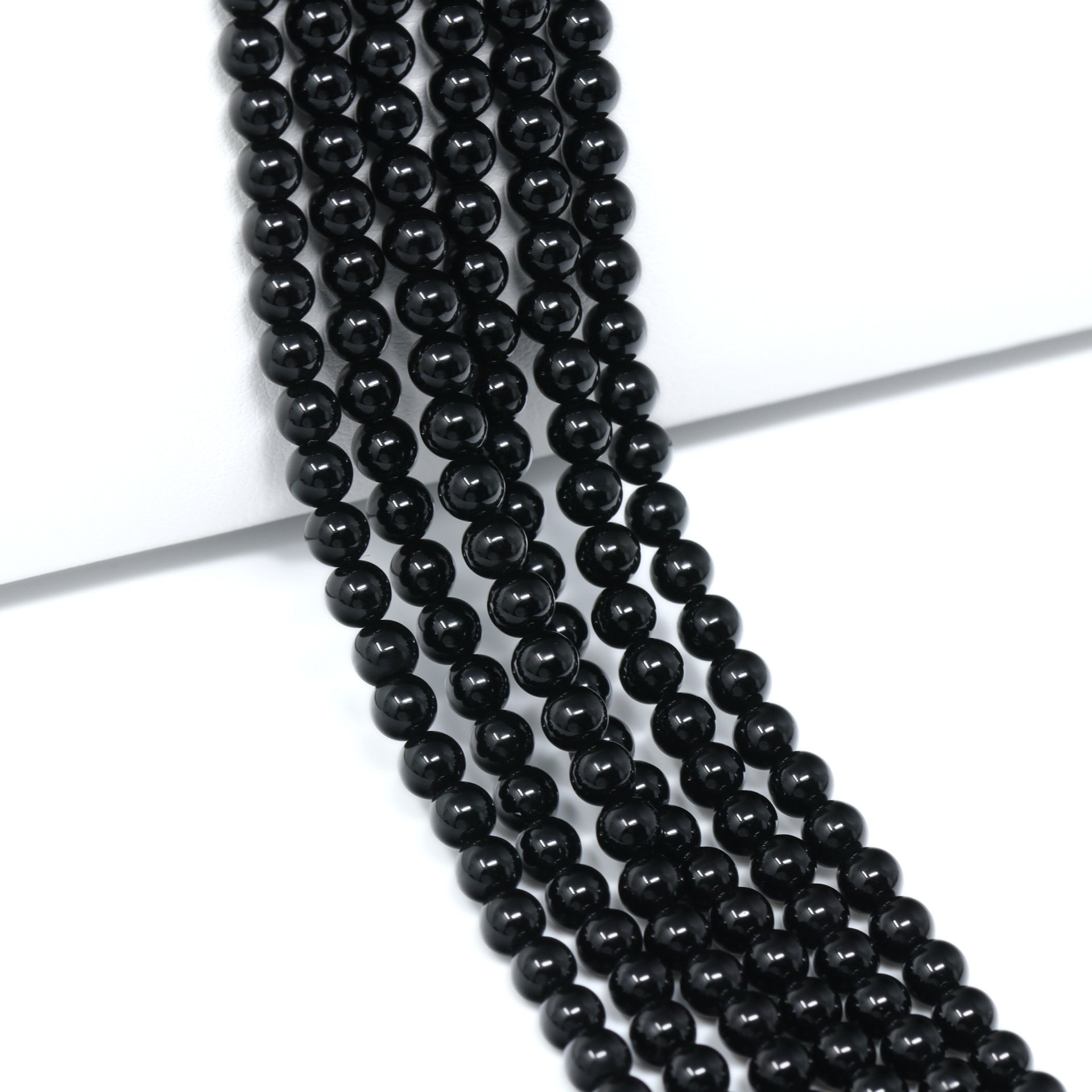 Black Onyx 4mm Smooth Rounds Bead Strand