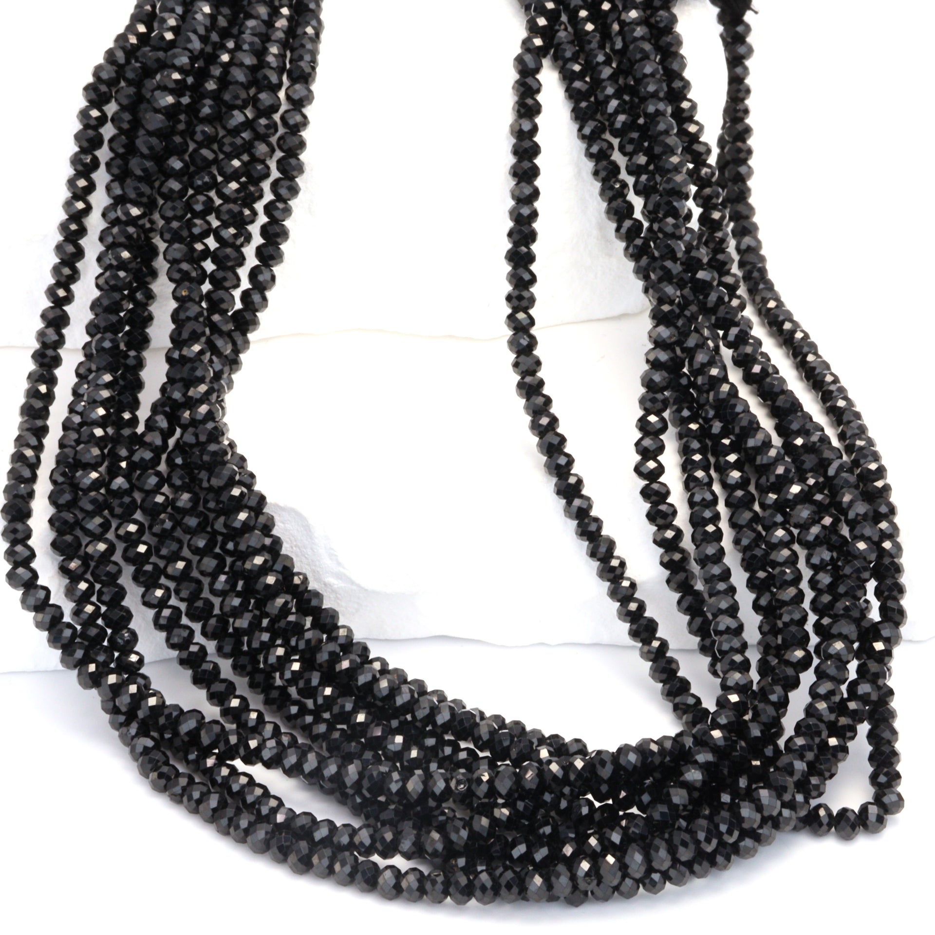 Black Spinel 3mm Faceted Rondelles Bead Strand