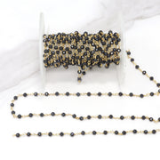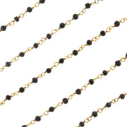 Black Spinel 3mm Faceted Rondelles Rosary Chain Sterling Silver with Gold Plating Wire Wrap Chain by the Foot