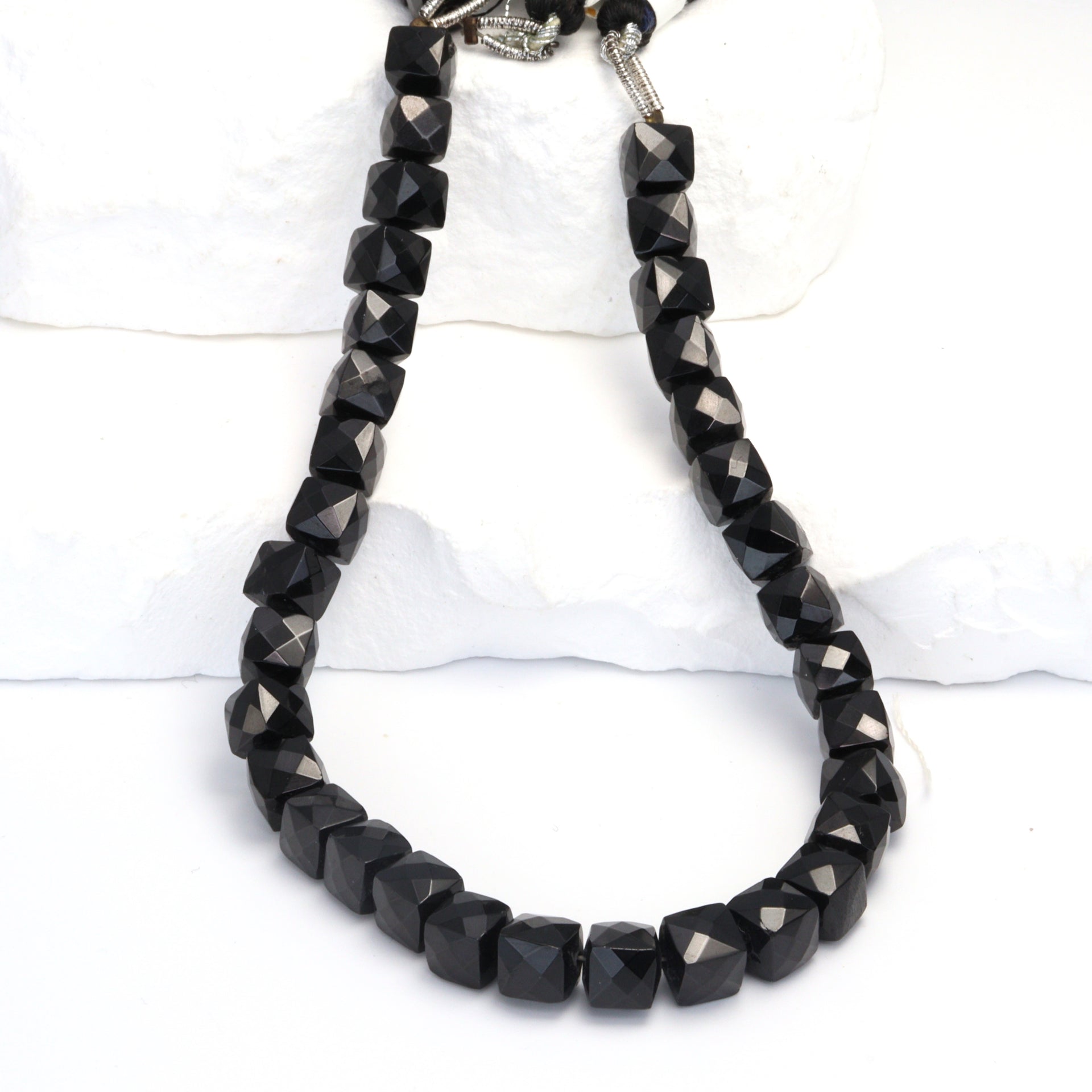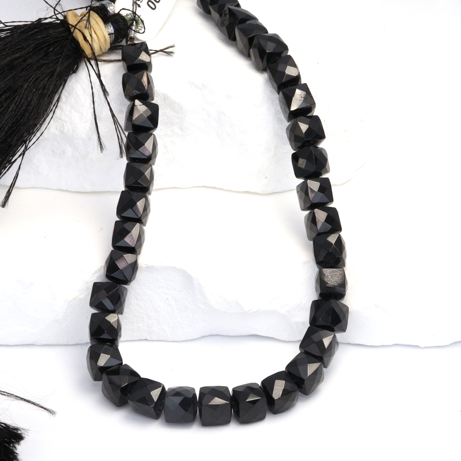 Black Spinel 6mm Faceted Cubes Bead Strand