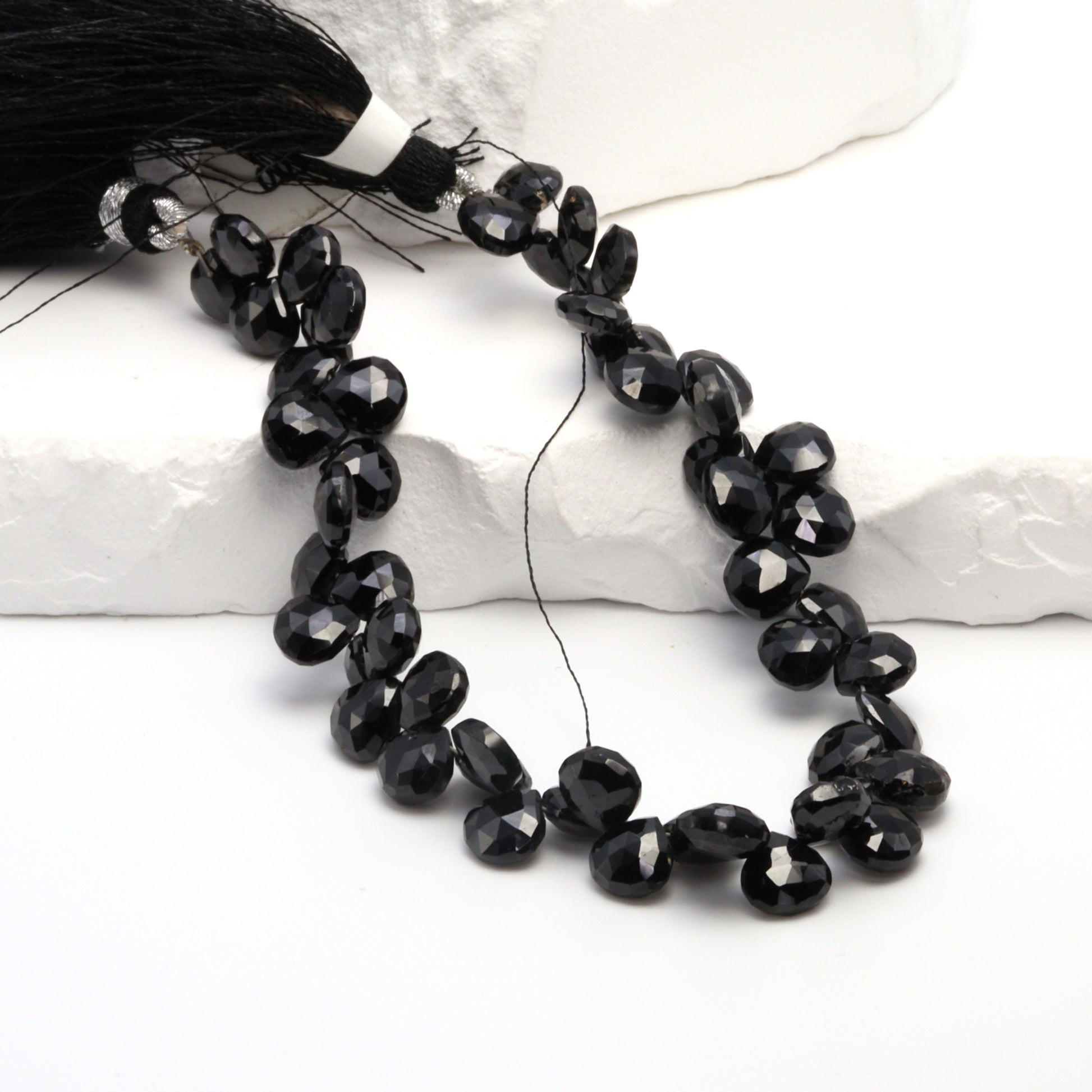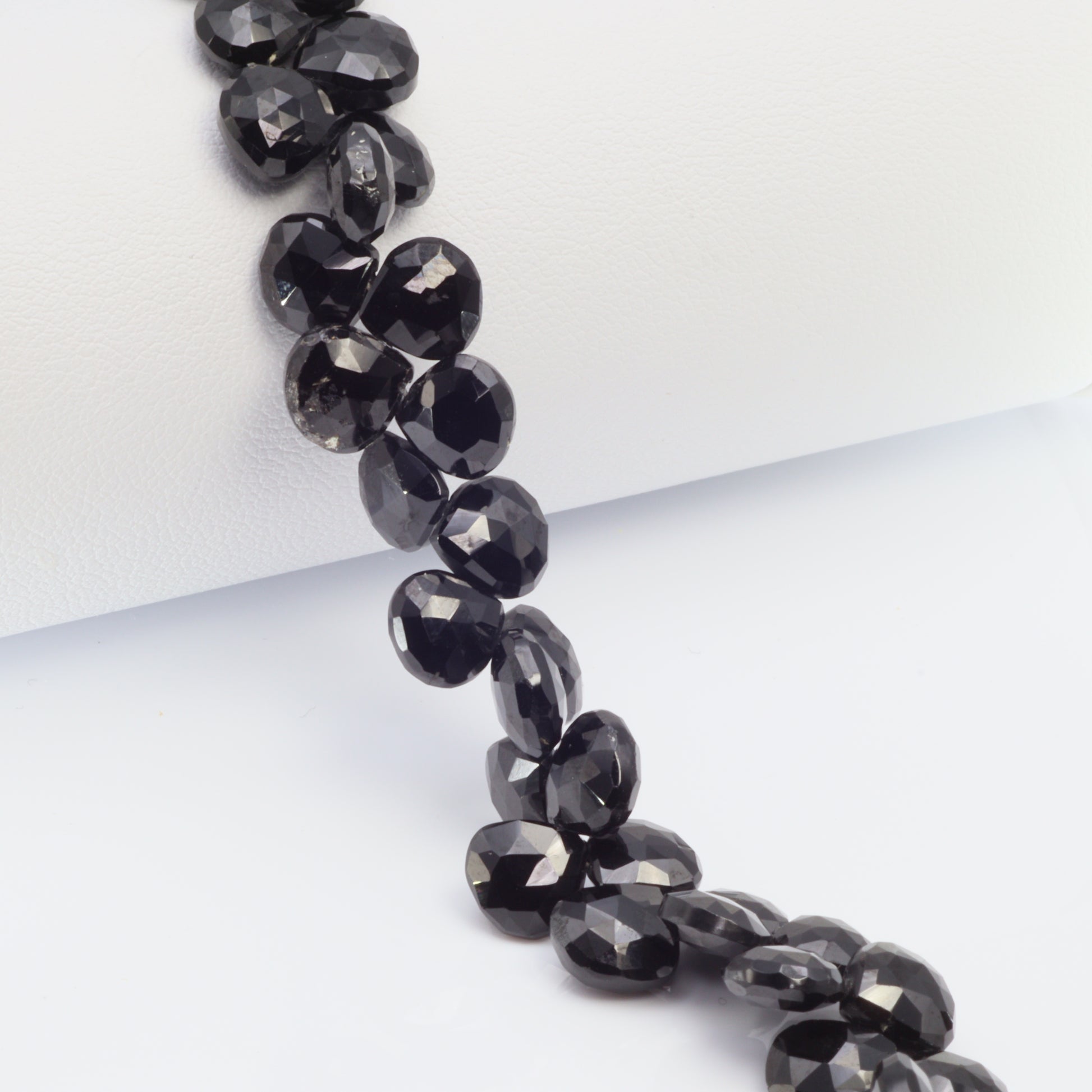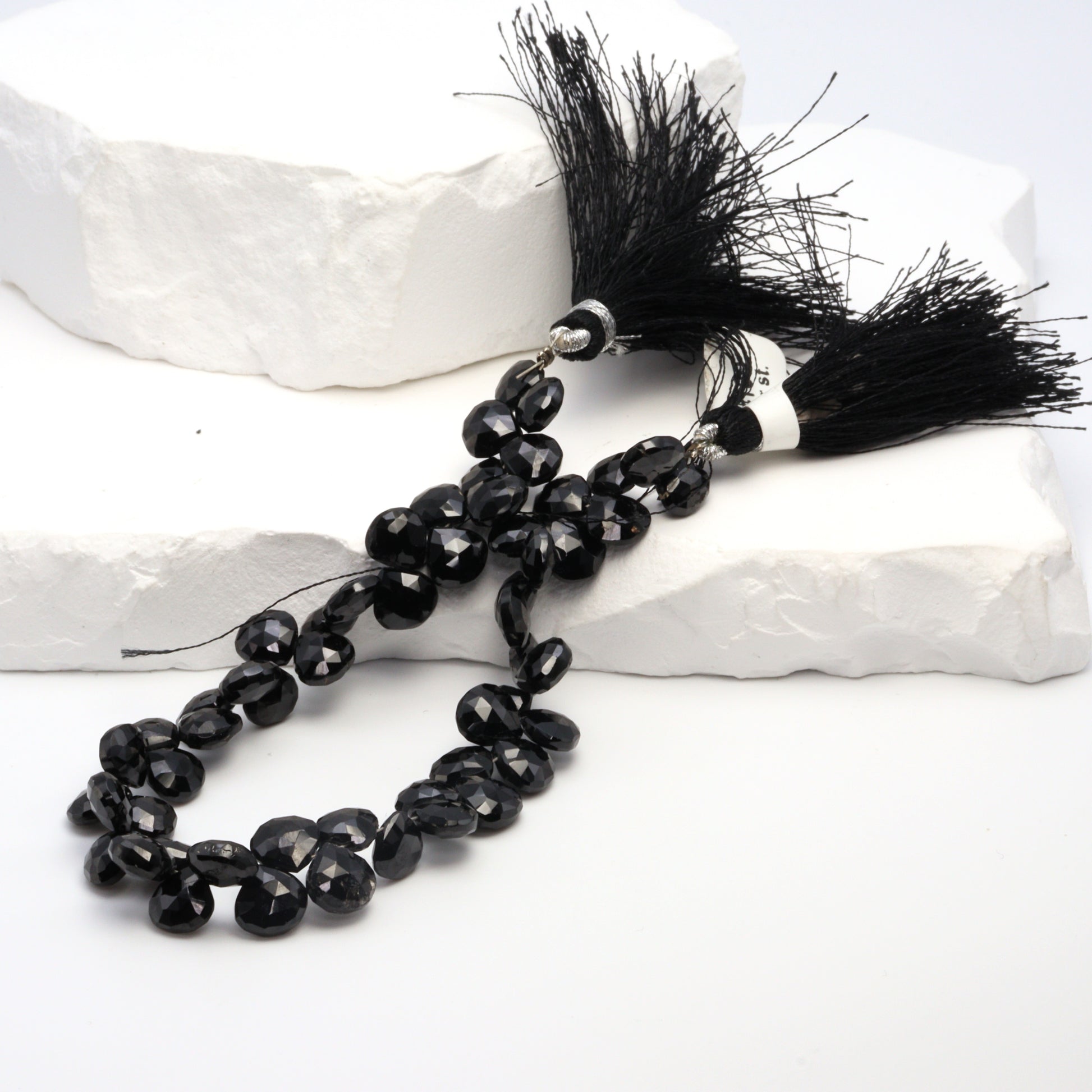 Black Spinel 7mm Faceted Heart Shaped Briolettes Bead Strand
