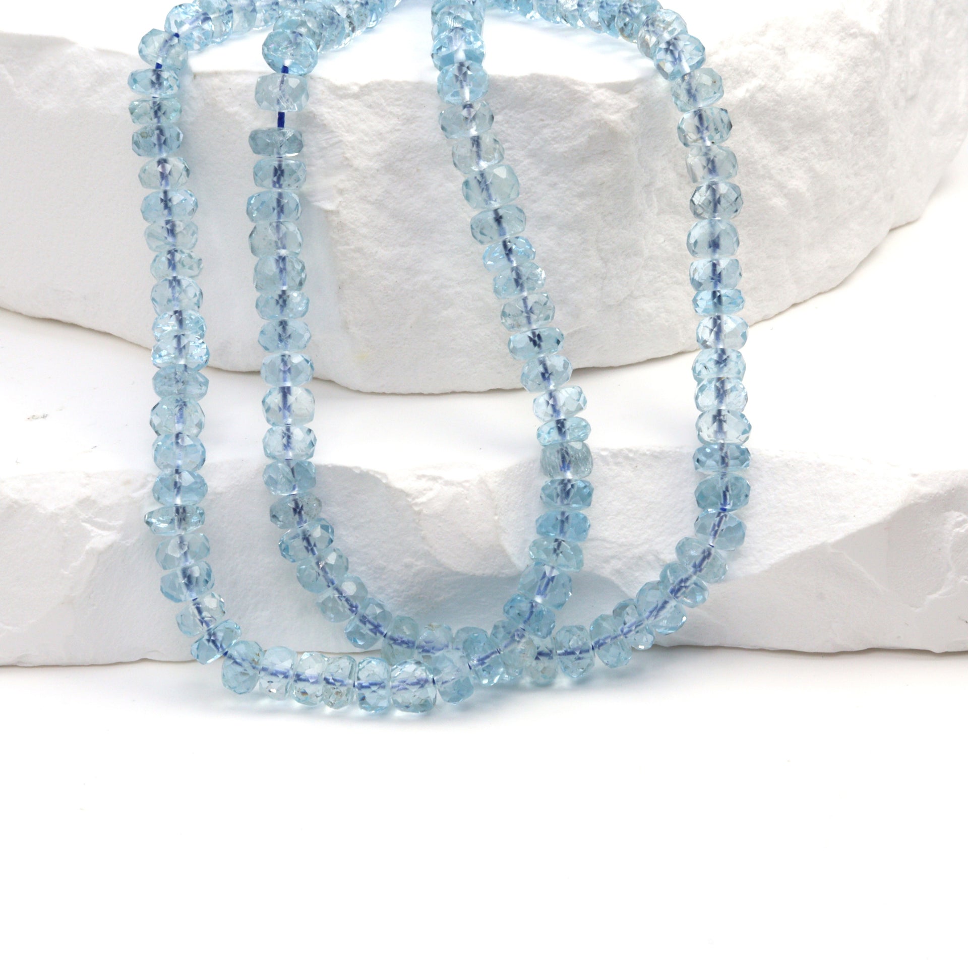 Blue Aquamarine 4mm - 5mm Hand Faceted Rondelles Bead Strand