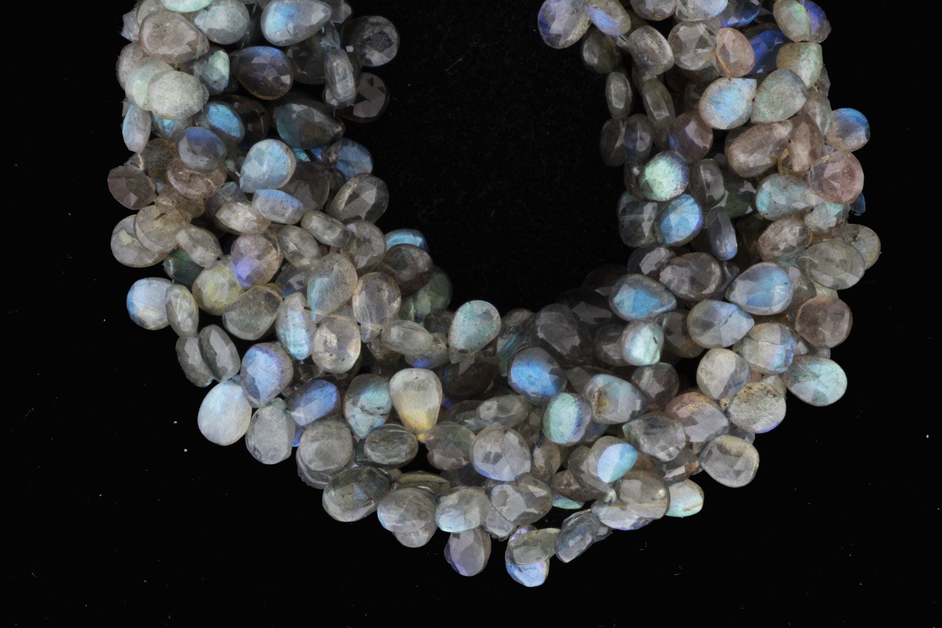 Blue Labradorite 8x6mm Faceted Pear Shaped Briolettes Bead Strand
