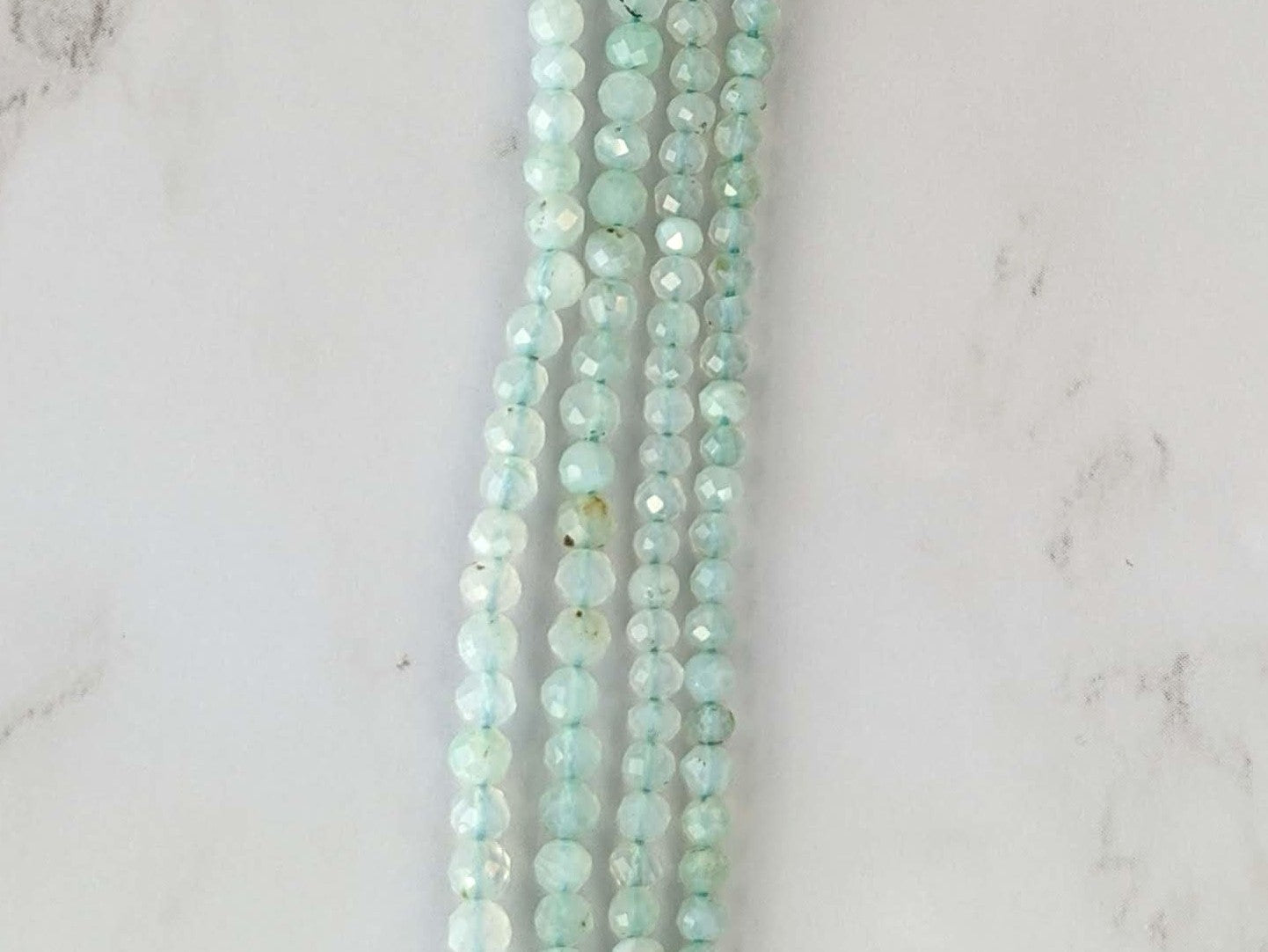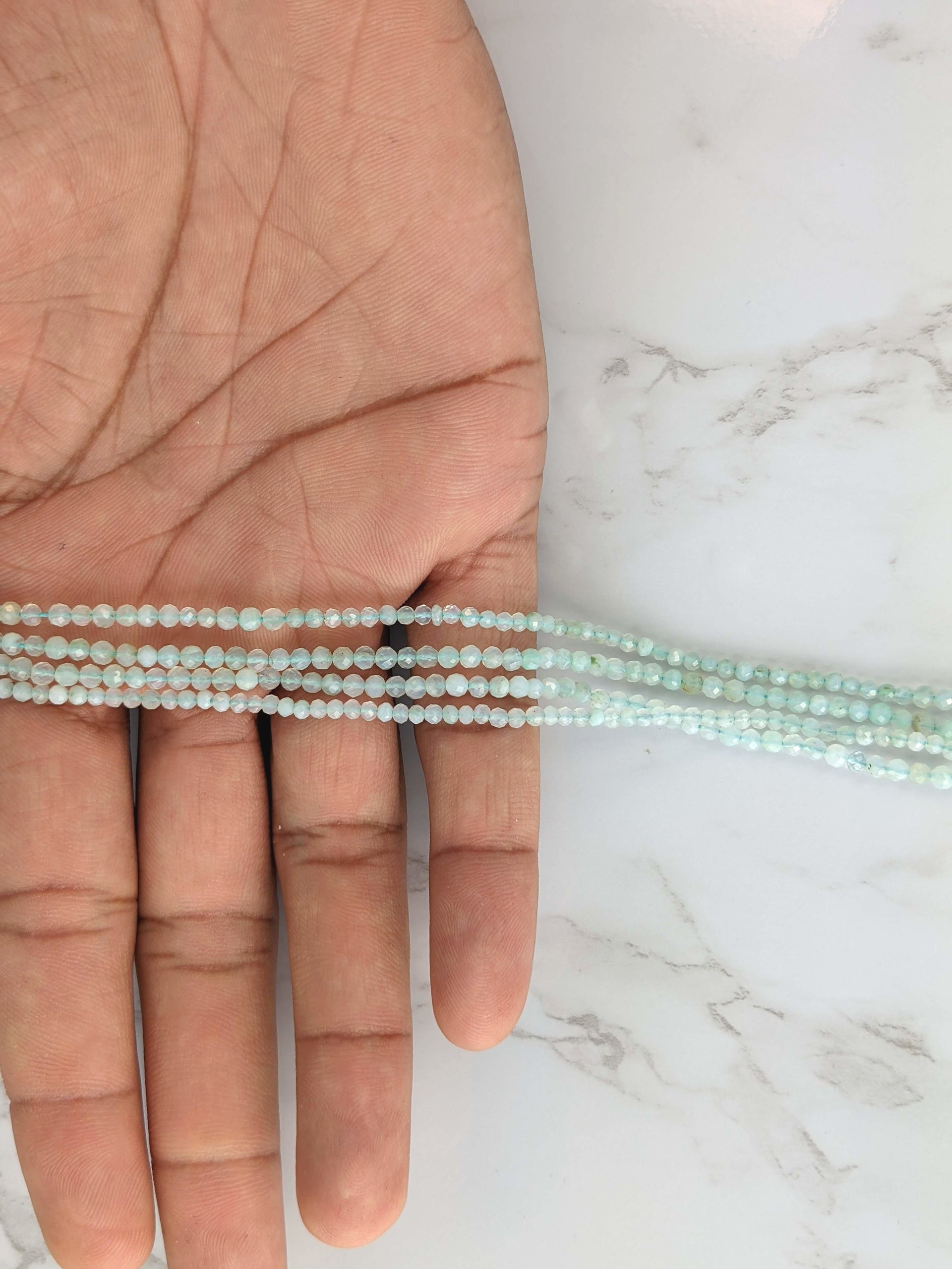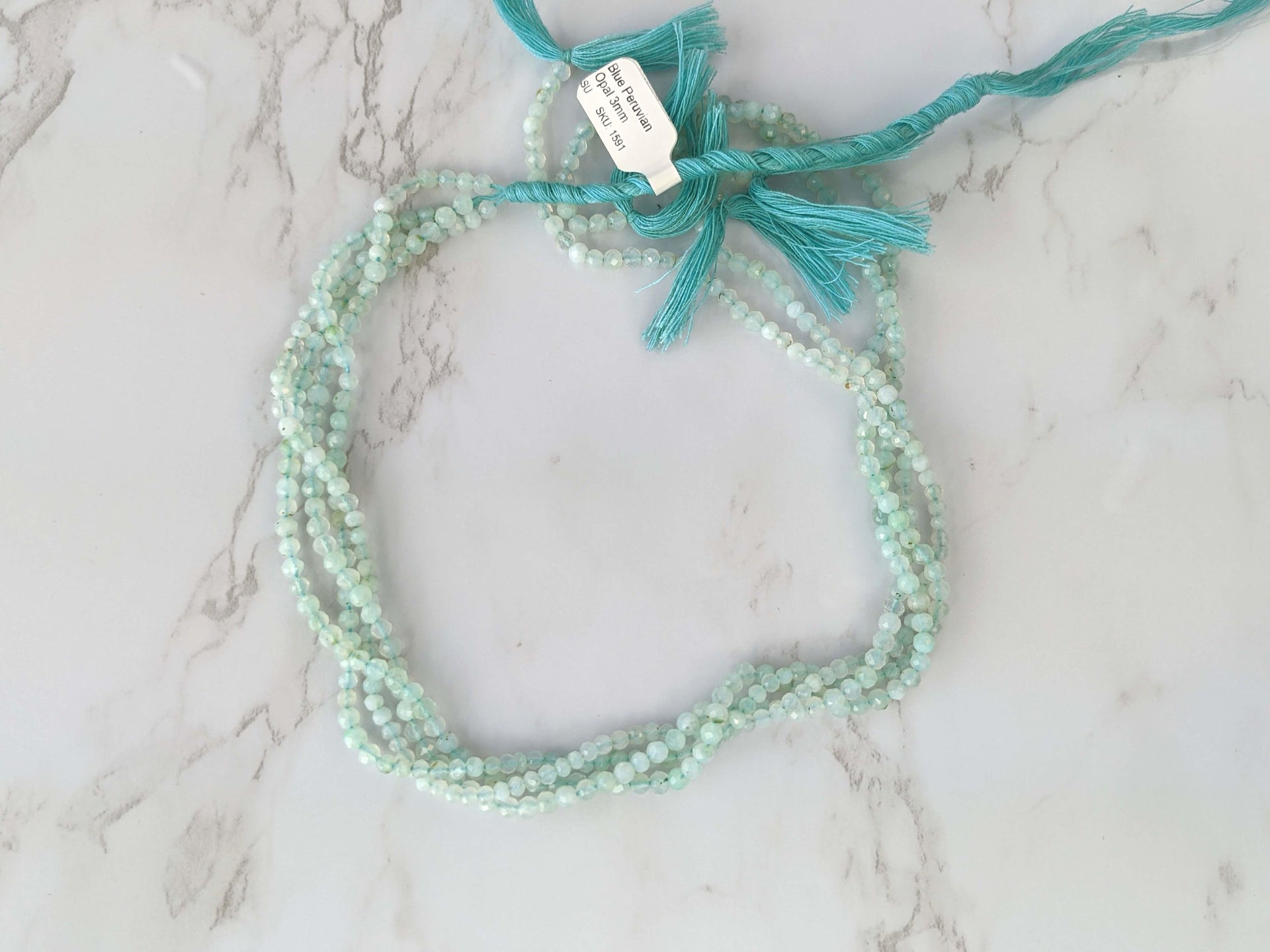 Blue Peruvian Opal 3mm Hand Faceted Rounds Bead Strand