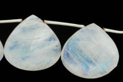 Blue Rainbow Moonstone 18mm Faceted Heart Shaped Briolettes