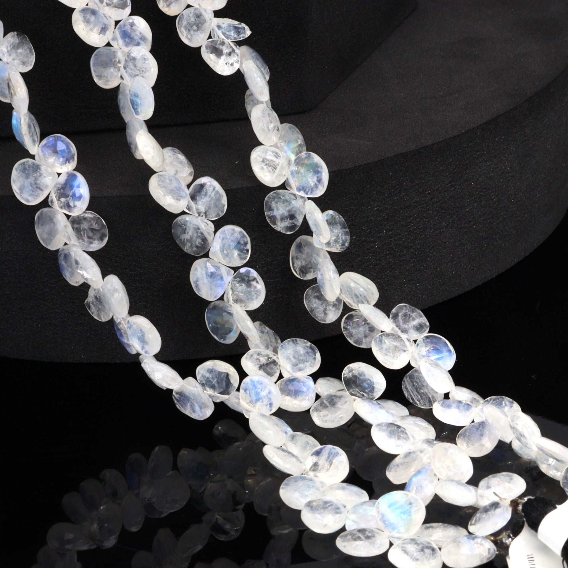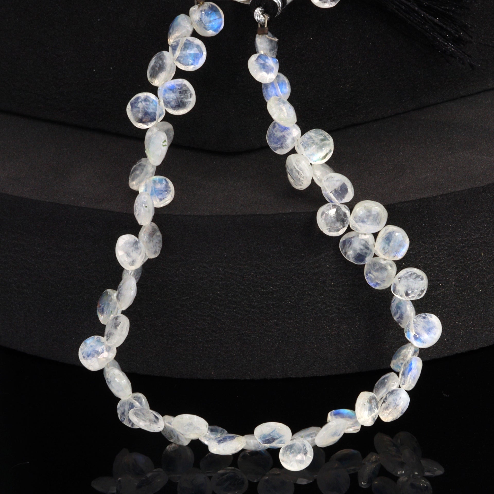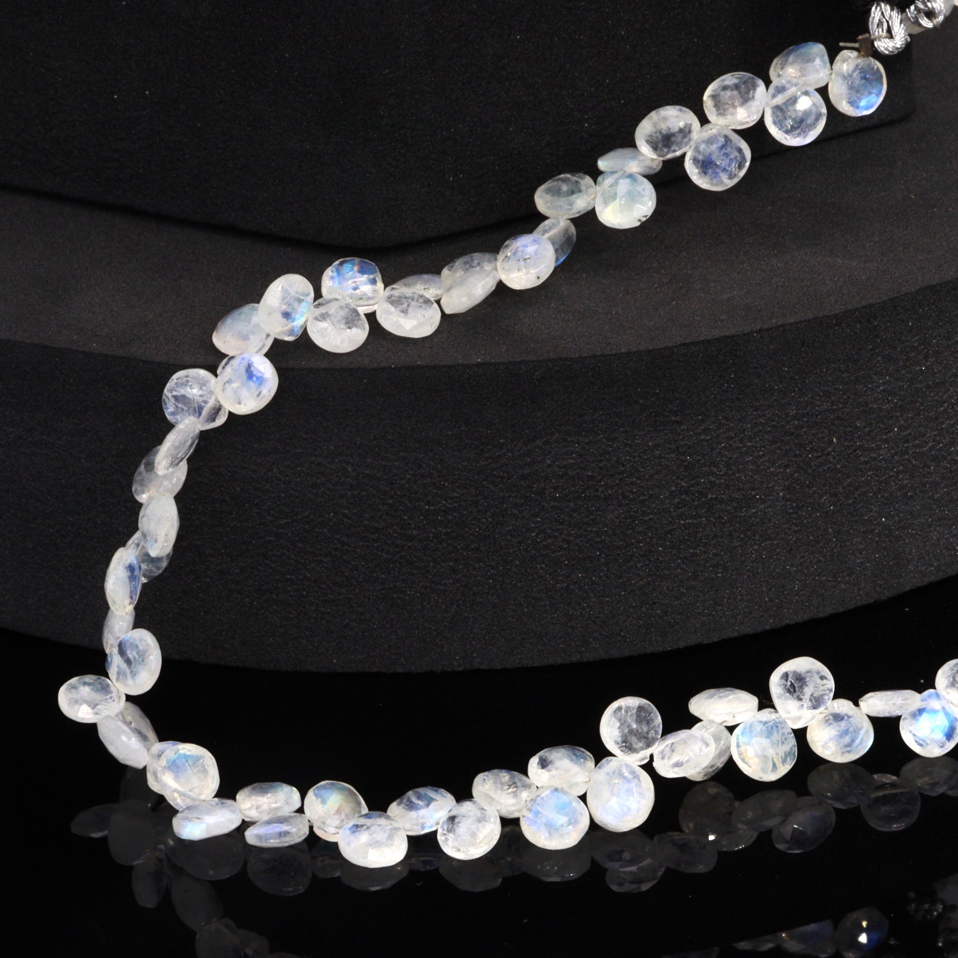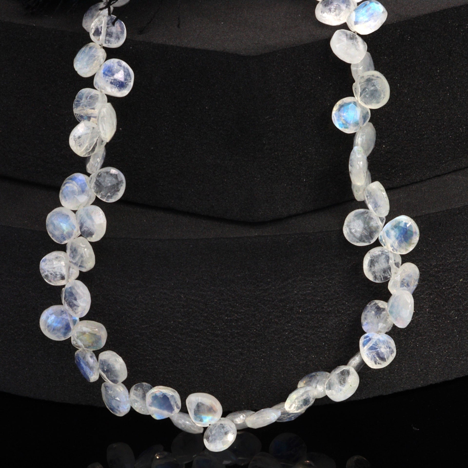 Blue Rainbow Moonstone 6mm Faceted Heart Shaped Briolettes Bead Strand