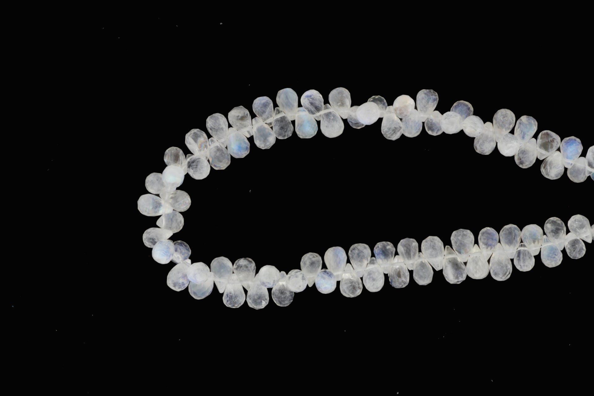 Blue Rainbow Moonstone 7x5mm Faceted Teardrop Briolettes Bead Strand