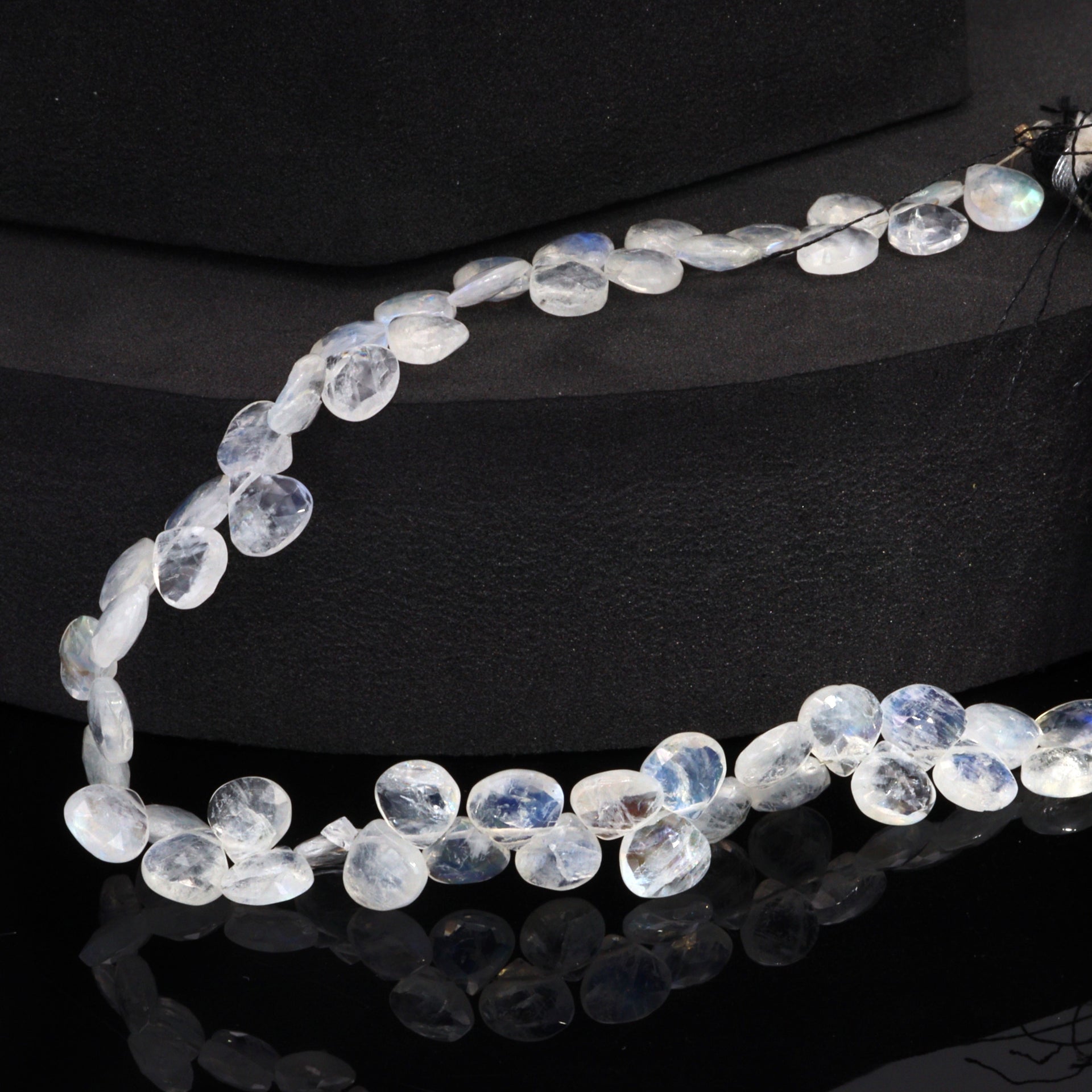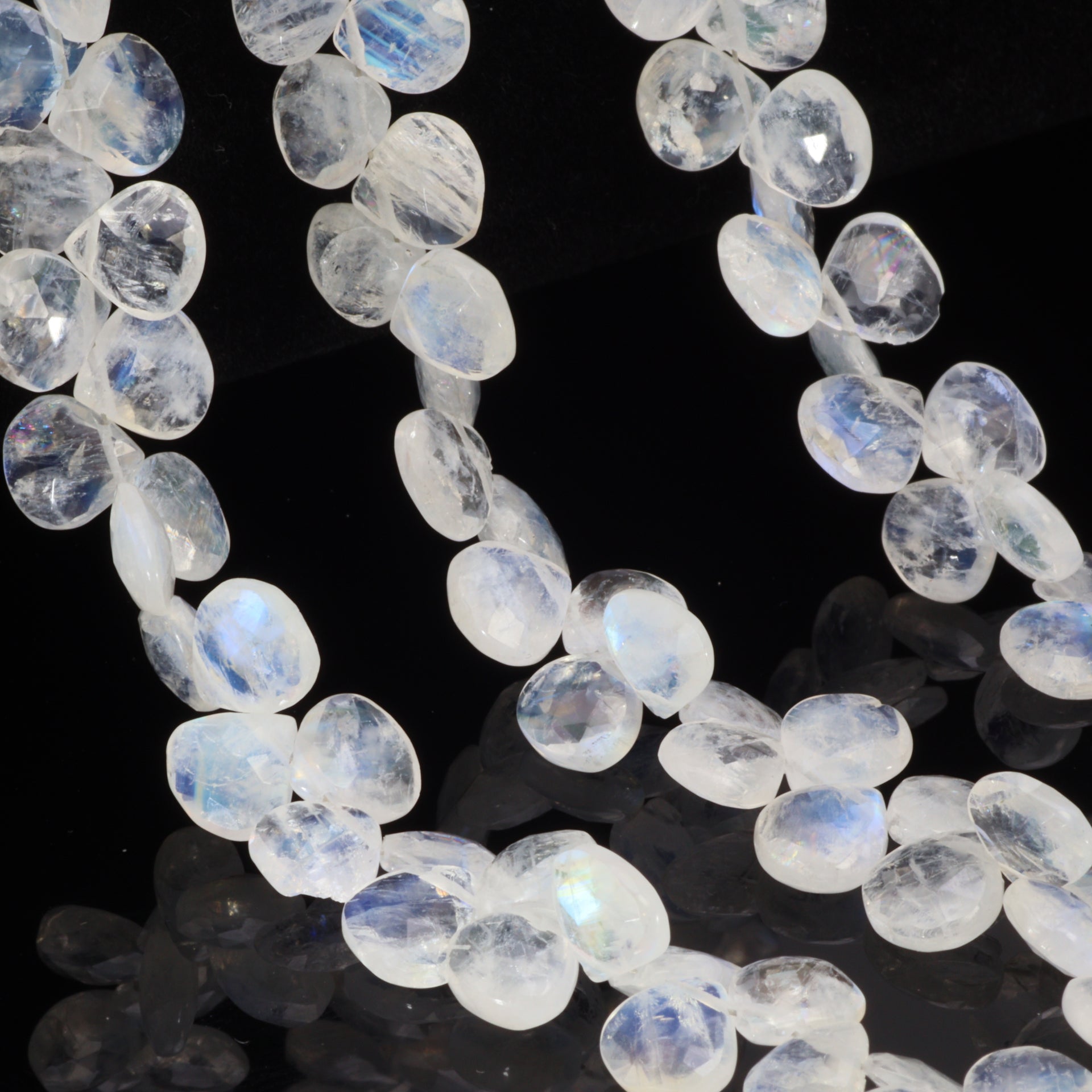 Blue Rainbow Moonstone 8mm Faceted Heart Shaped Briolettes Bead Strand