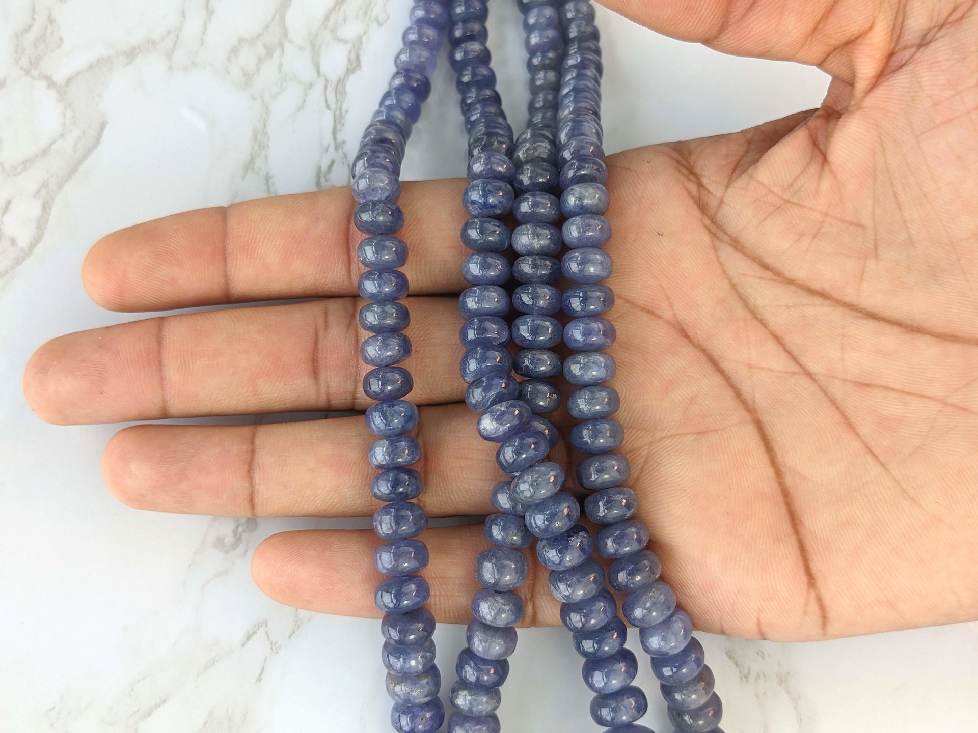 Blue Tanzanite 9mm - 13mm Smooth Rondelles Bead Strand