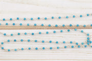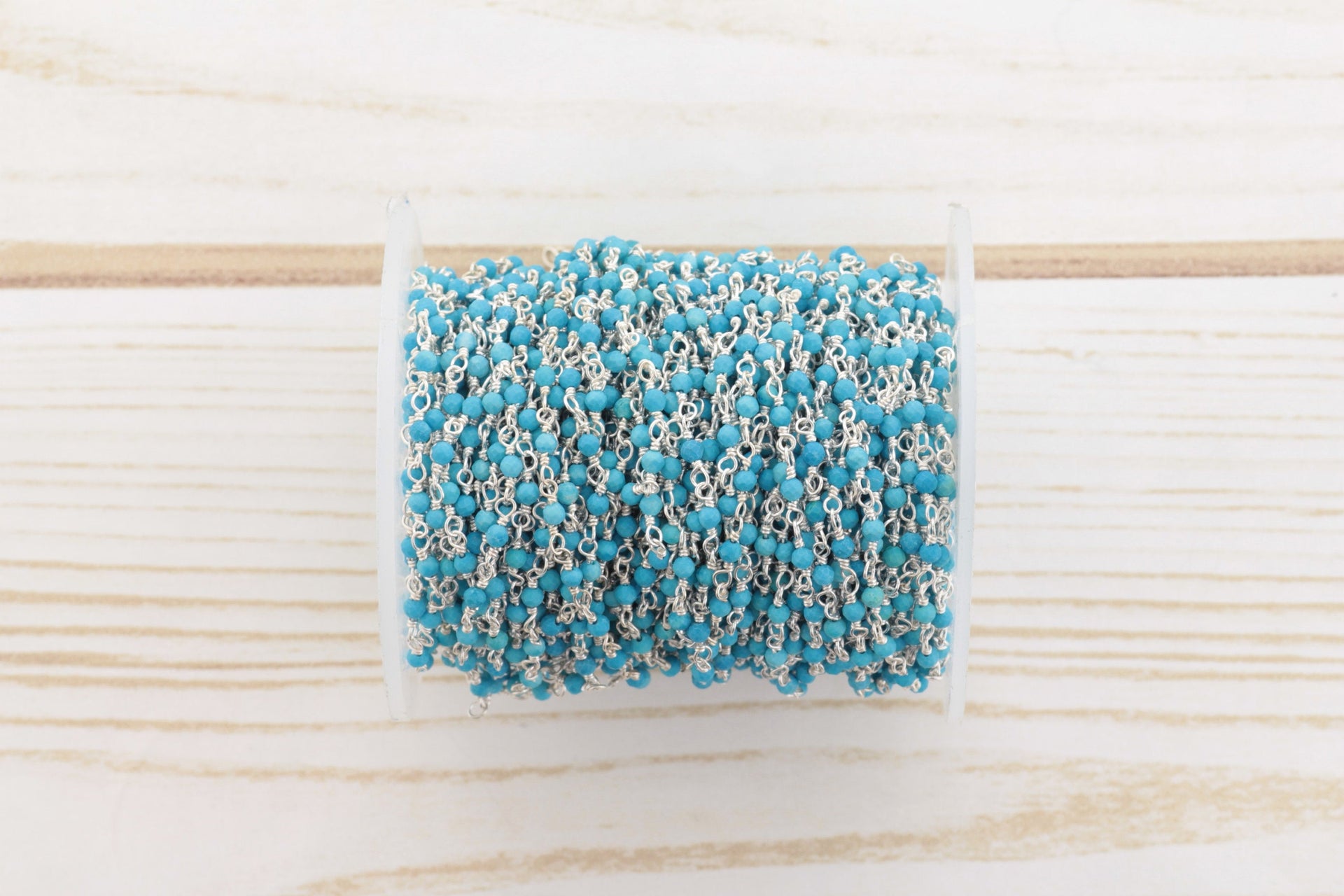 Blue Turquoise (R) 2.5mm Faceted Rounds Rosary Chain Sterling Silver Wire Wrap Chain by the Foot