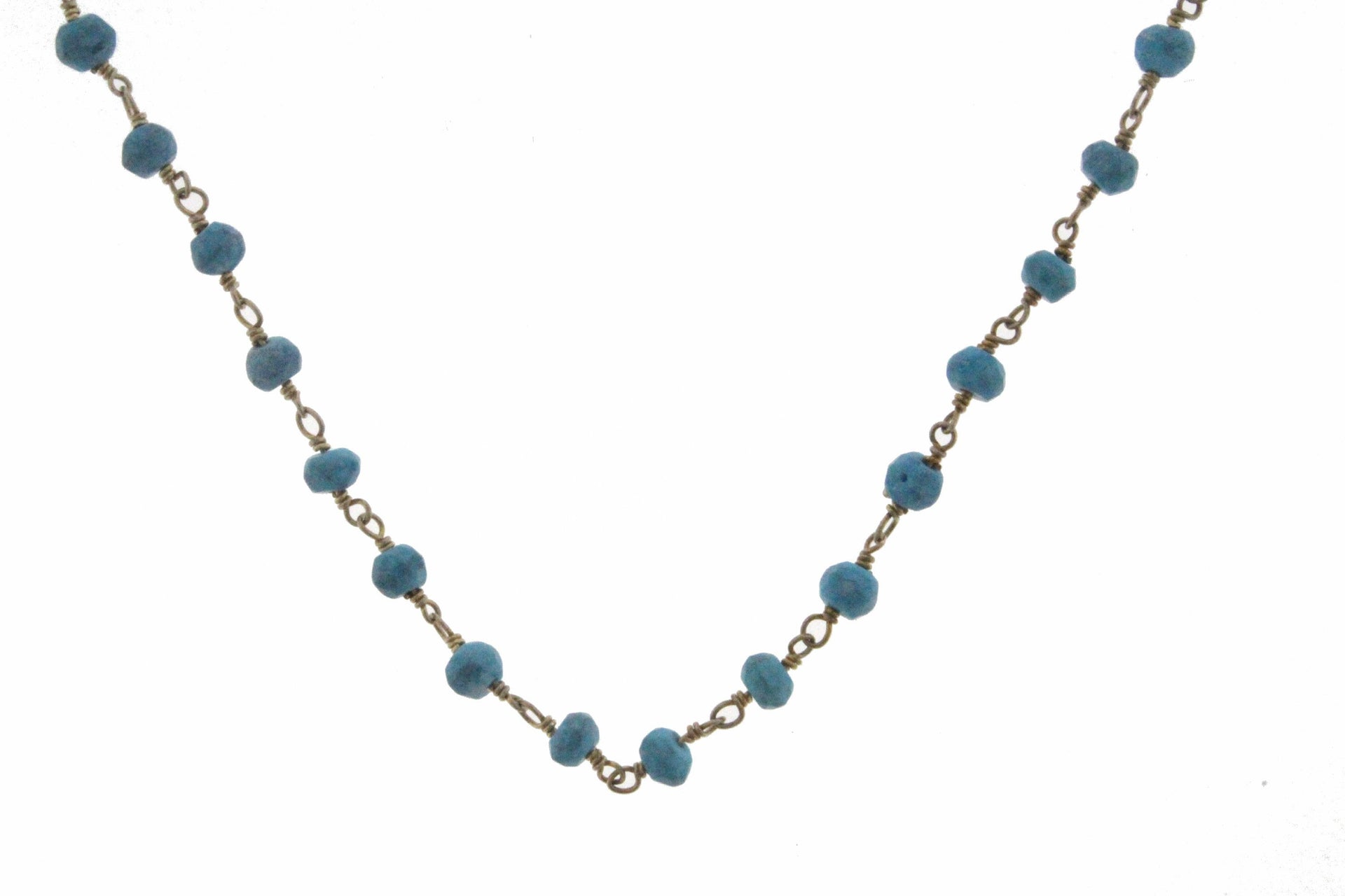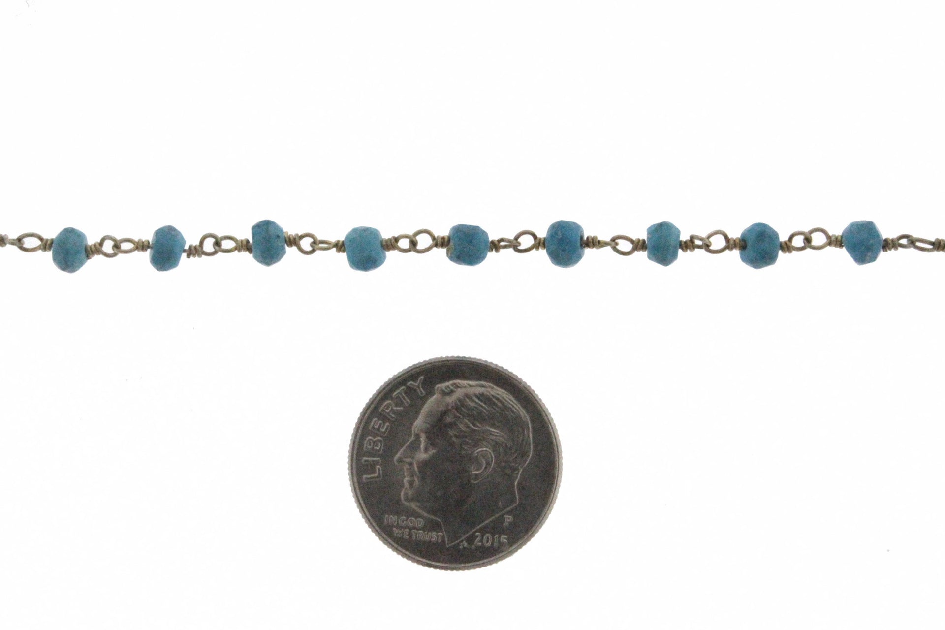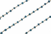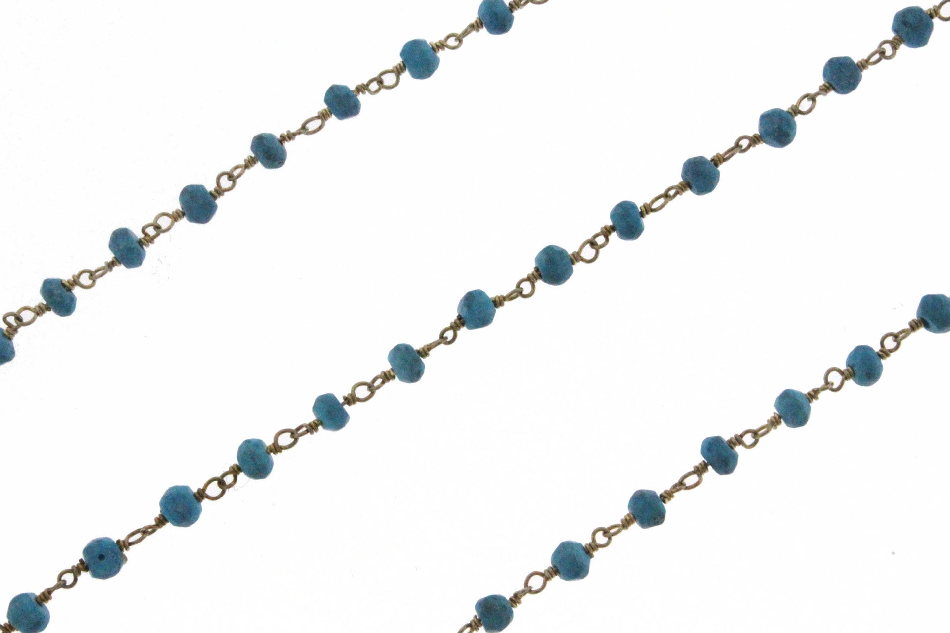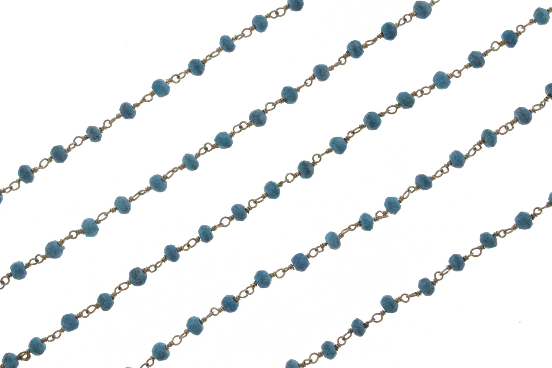 Blue Turquoise (R) 4mm Faceted Rondelles Rosary Chain Sterling Silver with Gold Plating Wire Wrap Chain by the Foot