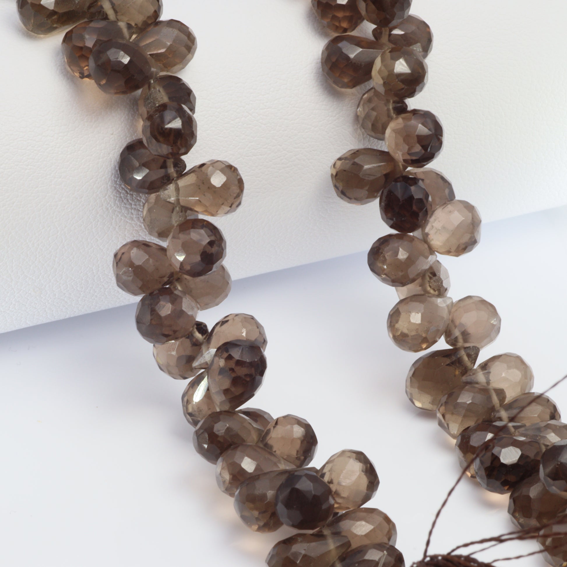 Brown Smoky Quartz 9x6mm Faceted Teardrop Briolettes Bead Strand