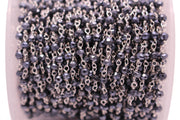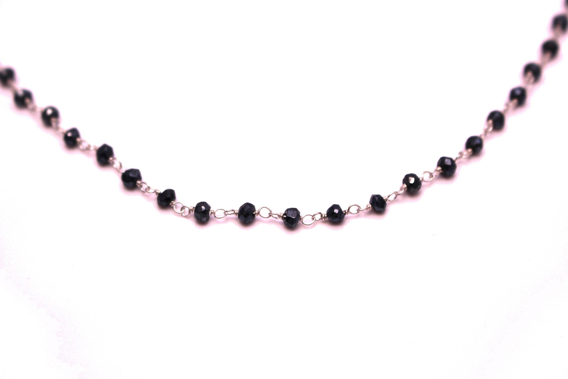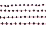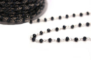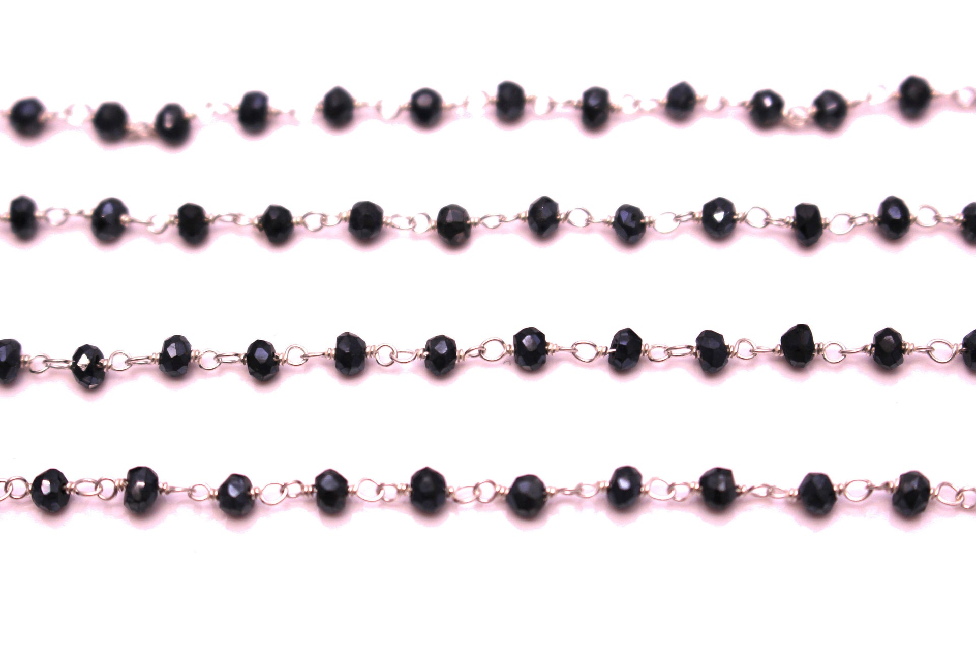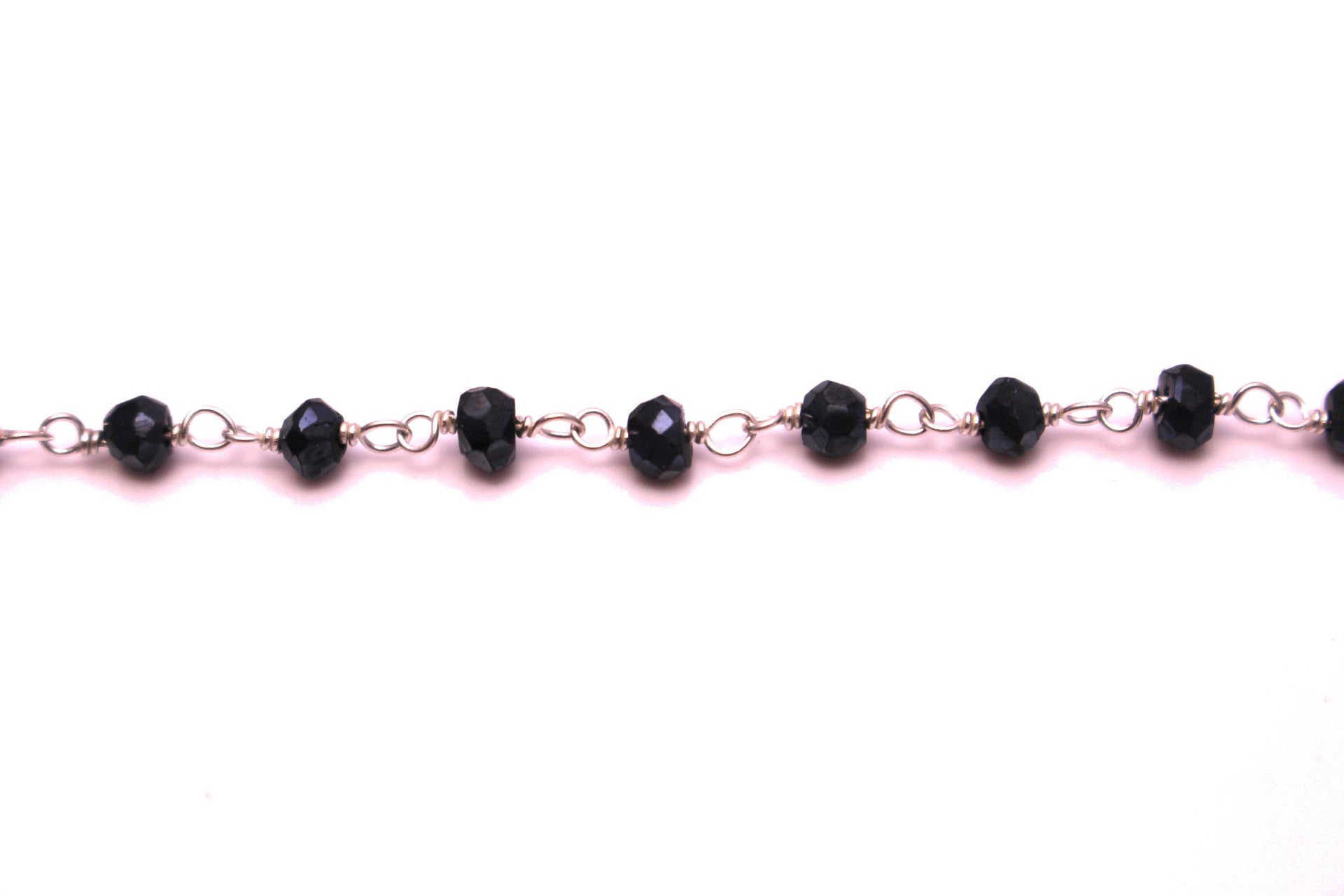 Coated Black Spinel 3mm Faceted Rondelles Rosary Chain Sterling Silver Wire Wrap Chain by the Foot