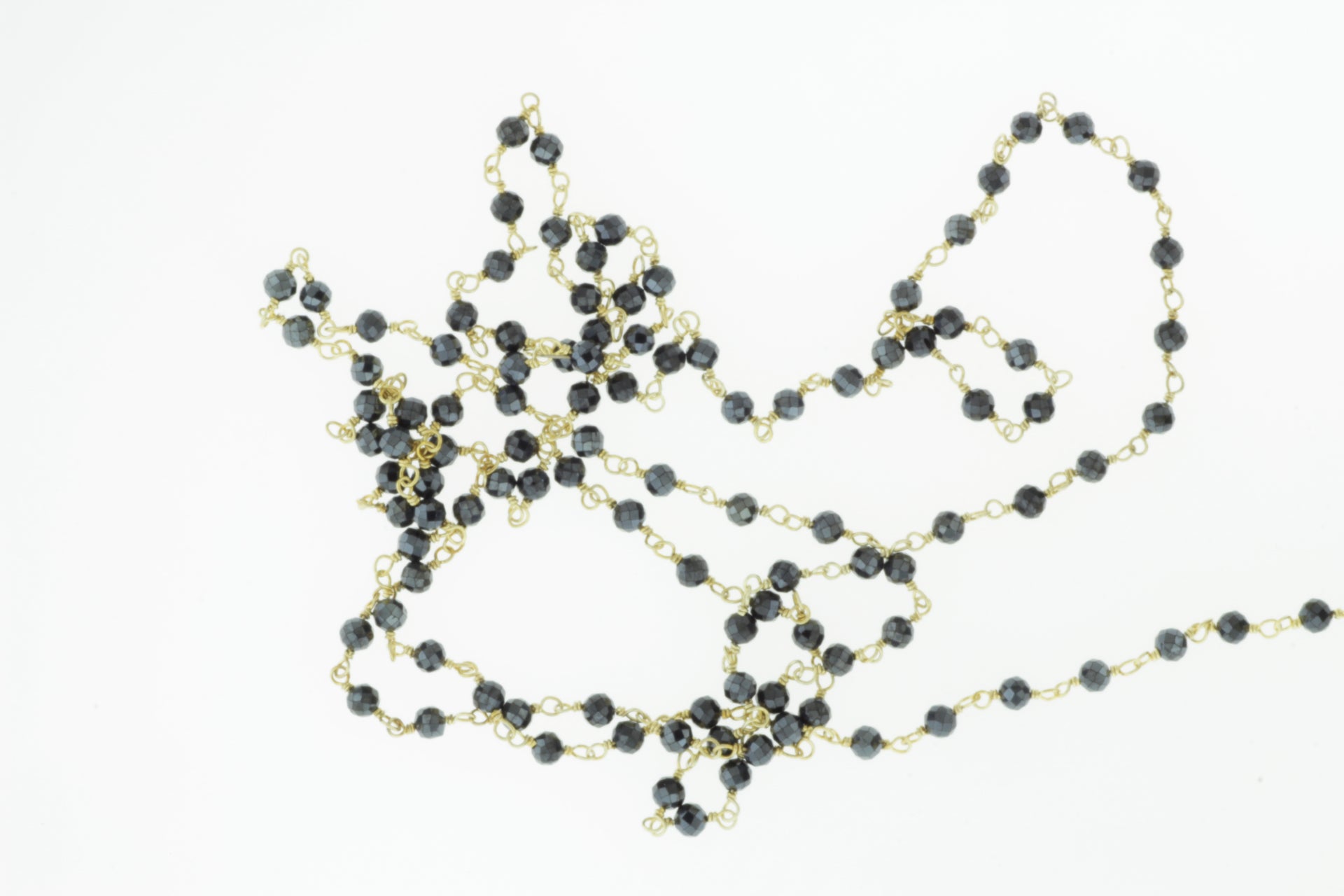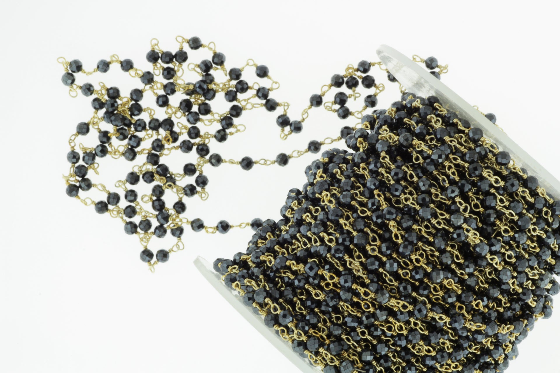 Coated Black Spinel 3mm Faceted Rondelles Rosary Chain Sterling Silver with Gold Plating Wire Wrap Chain by the Foot