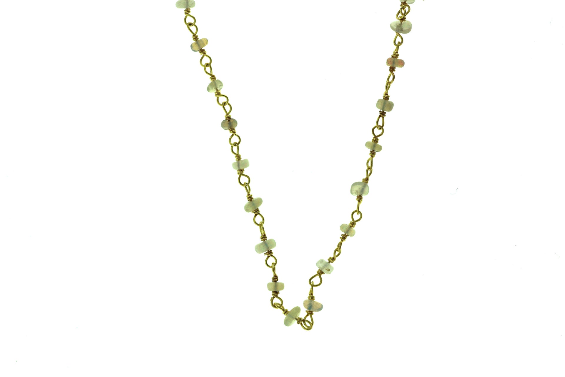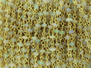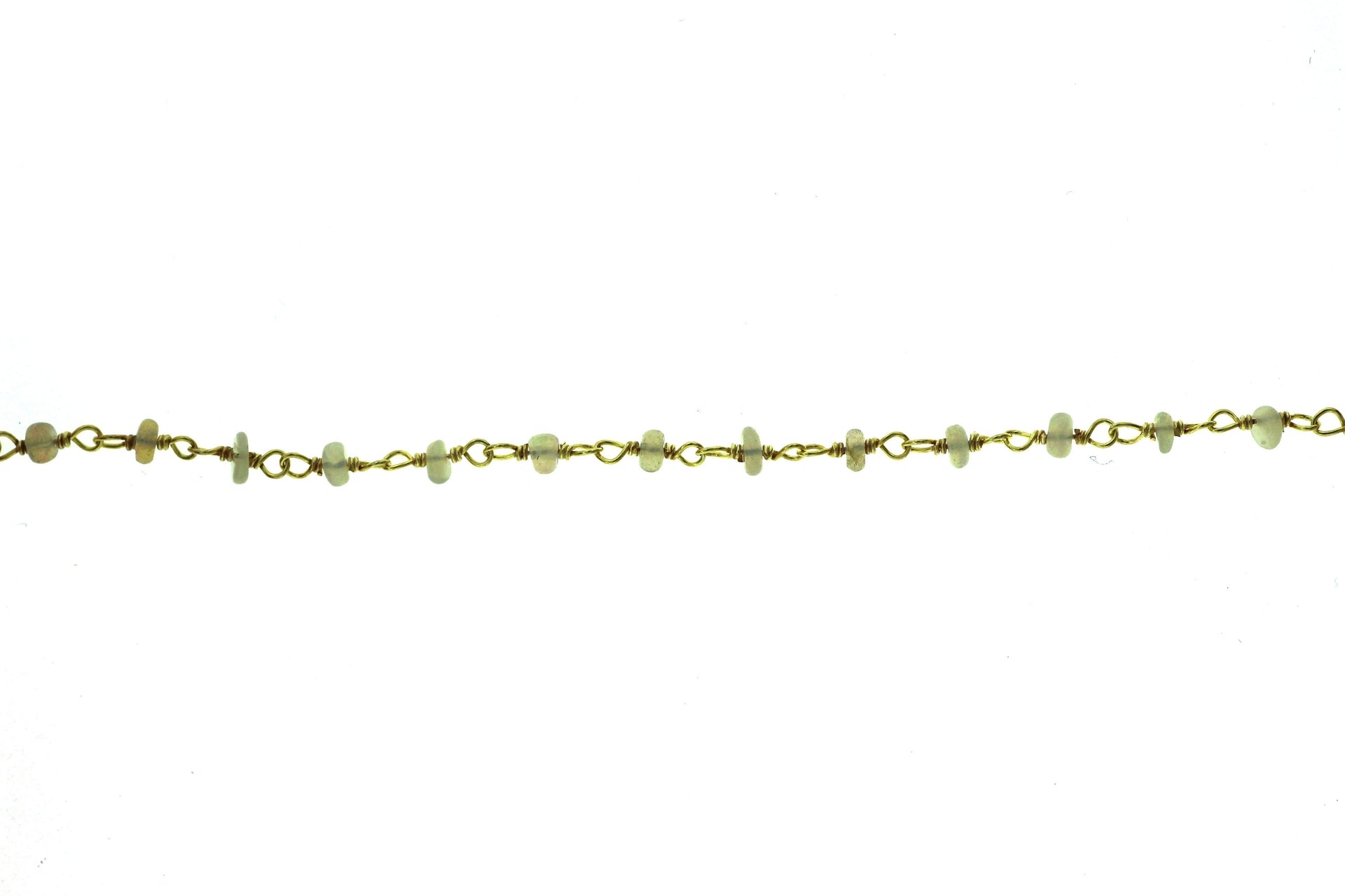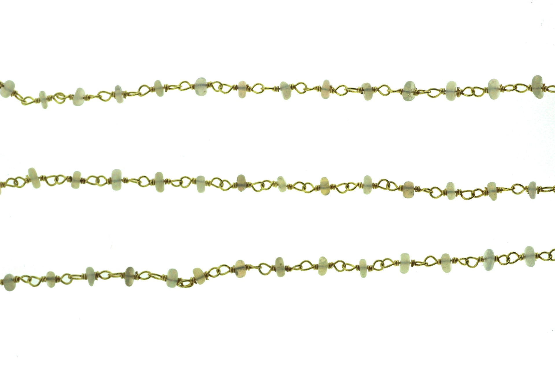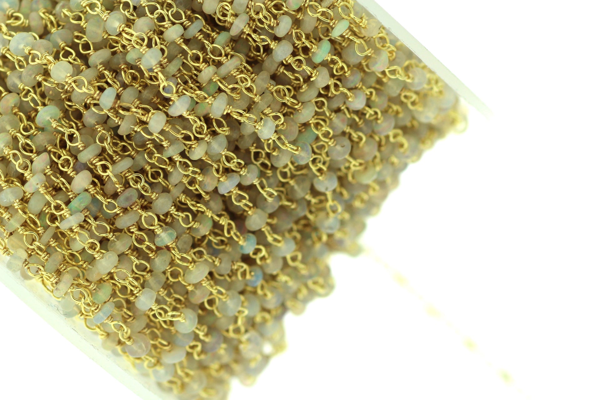 Ethiopian Opal 3mm Smooth Rondelles Rosary Chain Sterling Silver with Gold Plating Wire Wrap Chain by the Foot